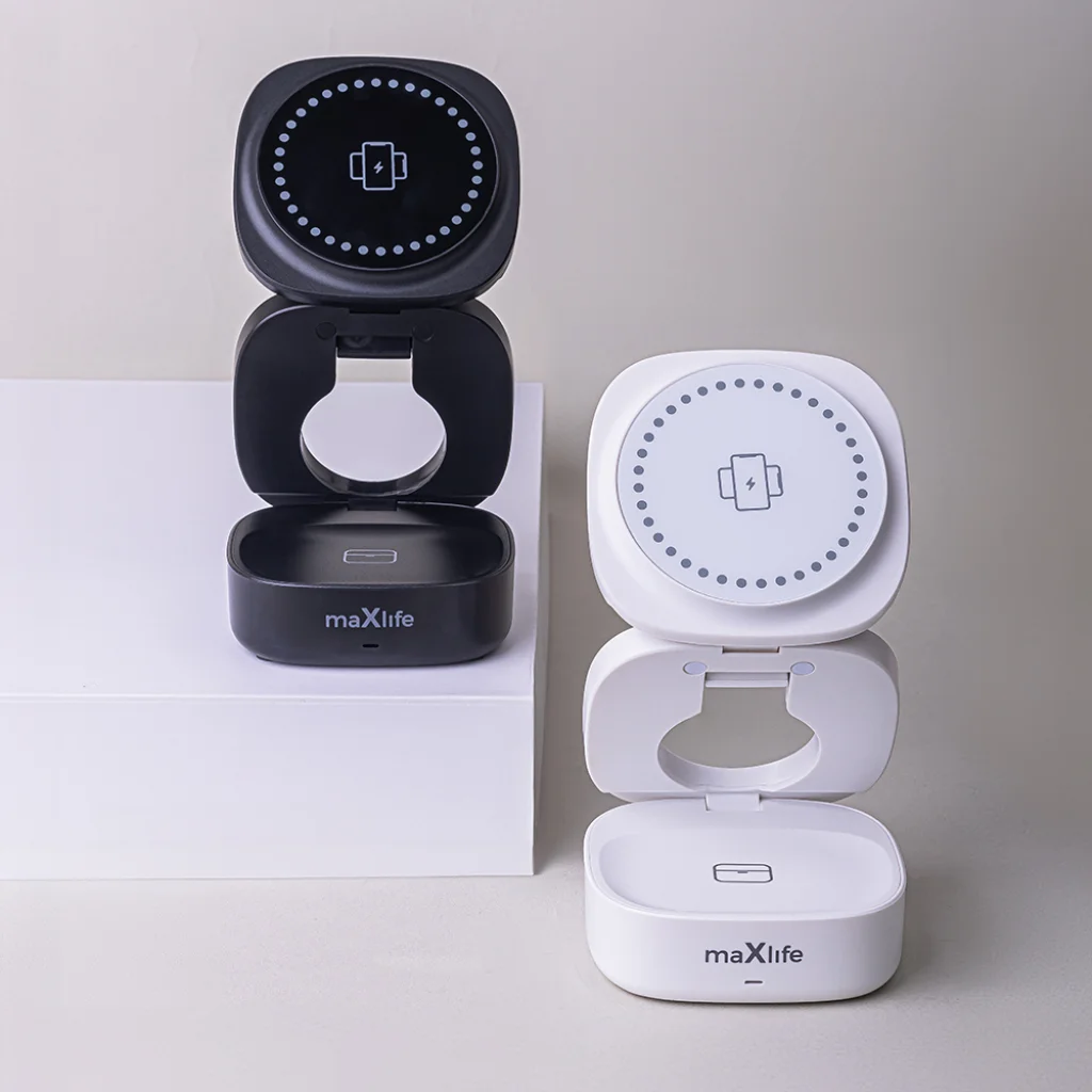 A töltő nem csupán energiát ad, hanem egyben egy rendkívül praktikus kiegészítő is. Összecsukva egy tenyérnyi, elegáns dobozt formáz, mely könnyedén szállítható. Kihajtva stabil állványként funkcionál, így telefonodat kényelmesen nézheted videózás vagy videóhívások közben, miközben az töltődik. Az "maXlife" logó és a diszkrét LED jelzőfény tovább emeli az eszköz prémium megjelenését.