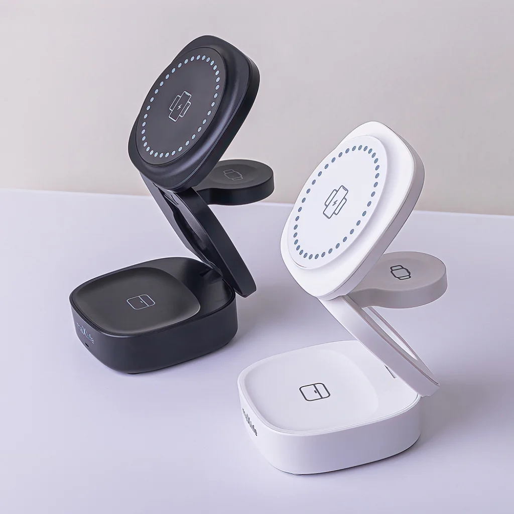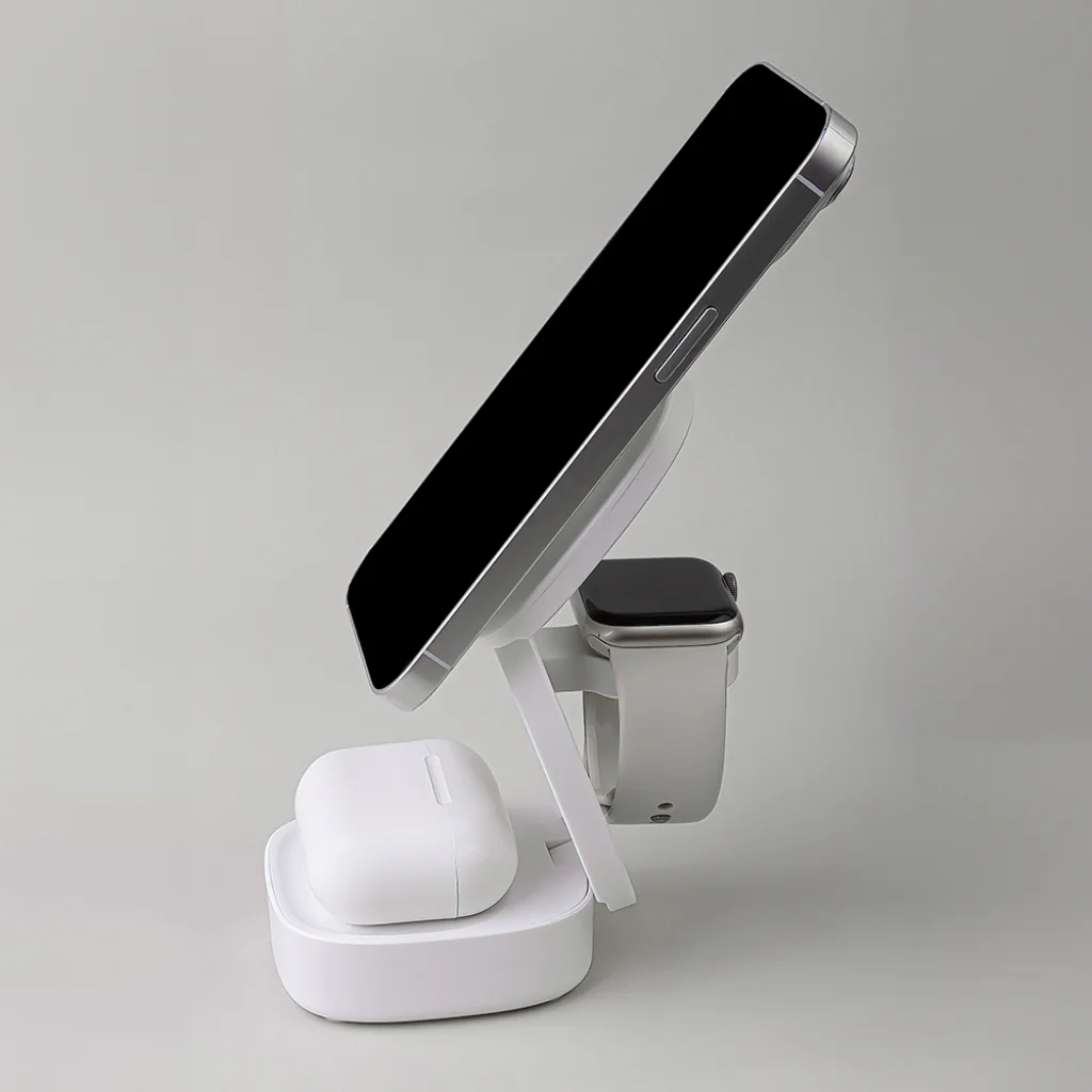 Innovatív, összecsukható mechanizmusával minimális helyet foglal el táskádban vagy bőröndödben, és pillanatok alatt egy multifunkcionális töltőállomássá alakítható át. Az erős mágnesek garantálják a stabil és biztonságos rögzítést a MagSafe-kompatibilis telefonok számára, miközben külön helyet biztosít az okosórának és a vezeték nélküli fülhallgatónak.