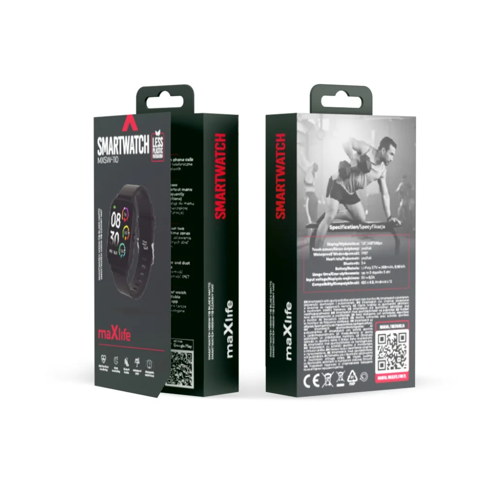 Az MXSW-110 Maxlife okosóra 22 sportmóddal van felszerelve, ami ideálissá teszi az egészségükre ügyelő, fizikailag aktív egyének számára. Támogatja a szívritmus, alvás és vér oxigénszintjének monitorozását, lehetővé téve az egészségügyi paraméterek pontos nyomon követését a nap 24 órájában. Az IP67 víz- és porállósági besorolással garantálja a védelmet a víz és por ellen, így kiváló társ a kültéri edzésekhez és az edzőtermi edzésekhez egyaránt. A Bluetooth-kapcsolatnak köszönhetően az okosóra lehetővé teszi a telefonhívásokat közvetlenül a csuklóról, és rendelkezik egy hangasszisztenssel, amely megkönnyíti az eszköz funkcióinak kéz nélküli kezelését. A felhasználók lehetőséget kapnak a menü szerkesztésére is, lehetővé téve számukra, hogy az interfészt saját igényeik szerint személyre szabják. Széles sportágak támogatásával rendelkezik, beleértve a gyaloglást, futást, túrázást, kerékpározást, jógát, pilatest és sok mást, lehetővé téve a beállítások testreszabását különböző fizikai tevékenységekhez. Az okosóra gyors hozzáférési funkcióval van felszerelve a gyakran használt parancsikonokhoz, valamint lehetőséggel két időzóna beállítására, ami tökéletes utazáshoz. Ezenkívül az okosóra energia-megtakarító funkciót, 50 névjegy tárolására alkalmas telefonkönyvet, "telefon keresése" opciót, az alkalmazásban elérhető cserélhető óraszámlapokat és azok testreszabásának lehetőségét kínálja, így ez a modell rendkívül funkcionális. Nyelvek: angol, olasz, portugál, lengyel, svéd, dán, cseh, szlovák, litván, szlovén, görög, bosnyák.