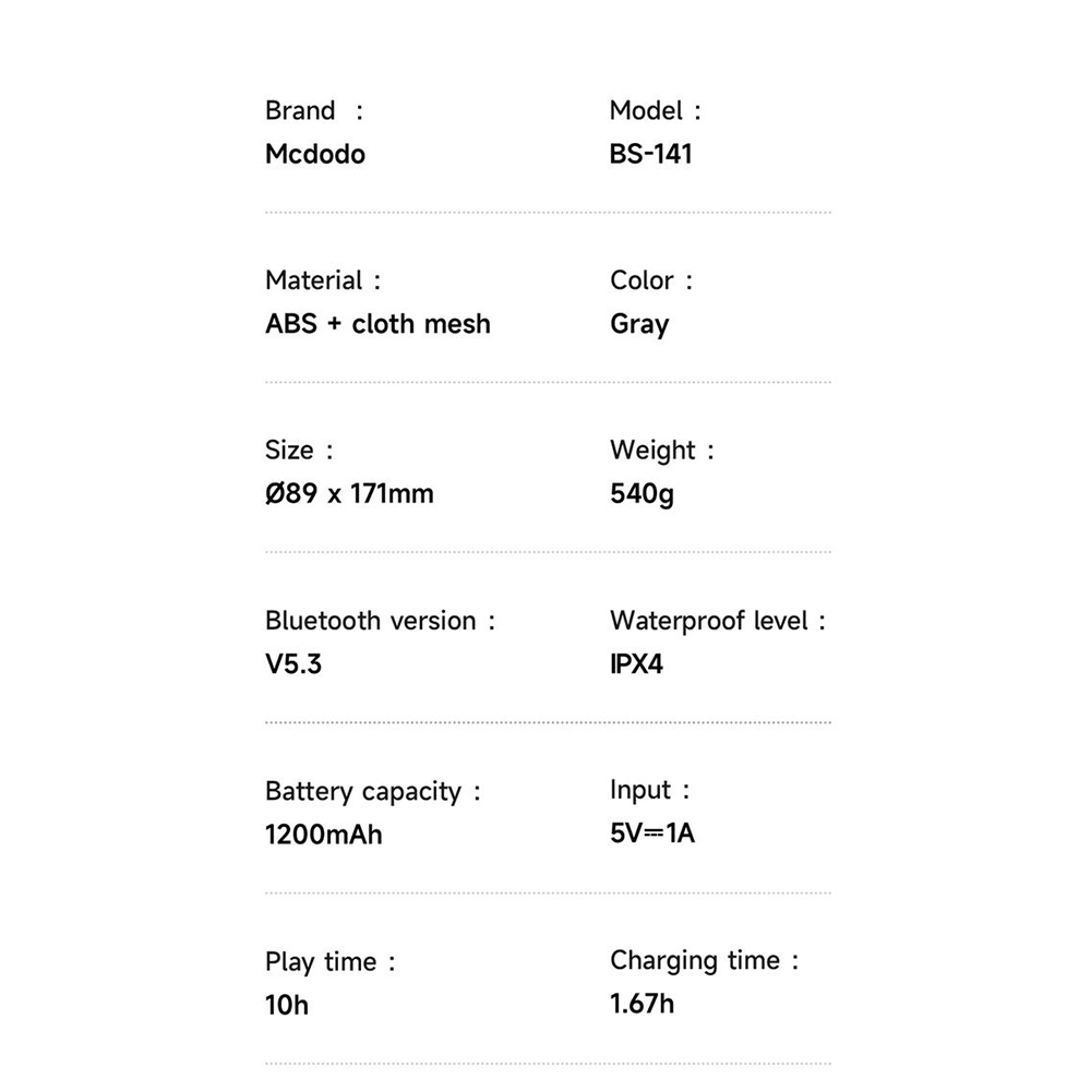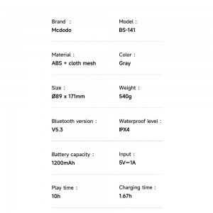 Akár kempingezni megy, piknikezik, tengerpartra indul, kerékpározik, vagy egyszerűen csak otthon szeretné feldobni a hangulatot, a Mcdodo BS-1410 hordozható vezeték nélküli hangszóró a színes fényekkel mindig a legjobb választás. Kompakt mérete és kiemelkedő teljesítménye garantálja a felejthetetlen zenei és vizuális élményt, bárhol is legyen.