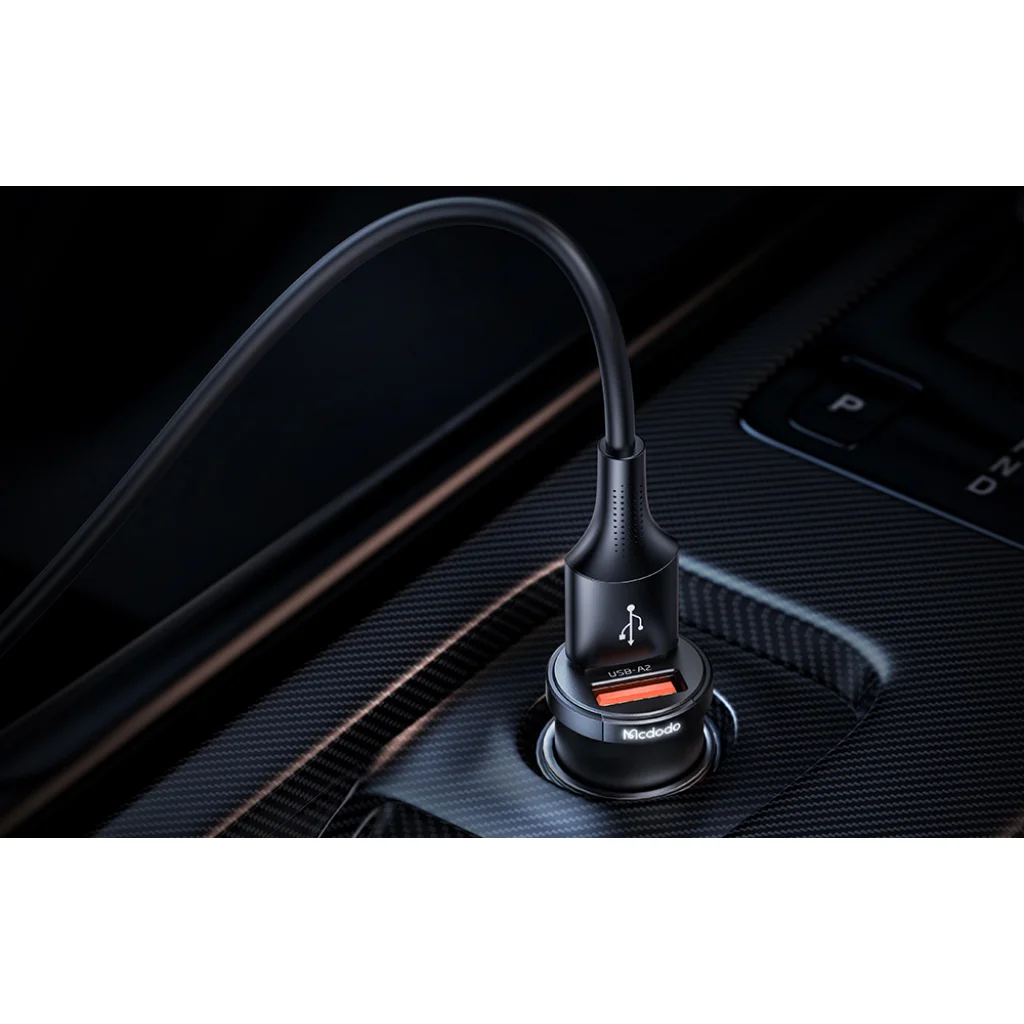 Kényelmesen töltse fel eszközeit útközben. A Mcdodo autós töltő USB-A portjainak köszönhetően 2 eszköz egyidejű csatlakoztatását teszi lehetővé, és egy LED-es jelzővel rendelkezik a sötétedés utáni könnyű helymeghatározás érdekében. Ezenkívül az alumíniumötvözet bevonat tartósságot és jó hőelvezetést biztosít. A 12 és 24 V közötti feszültségtámogatás viszont alkalmassá teszi a töltőt különféle típusú járművekhez.
