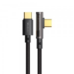 Mcdodo CA-3400 USB-C – USB-C adatkábel: 90 fokos, 100W, átlátszó dizájn, 1.2m, fekete