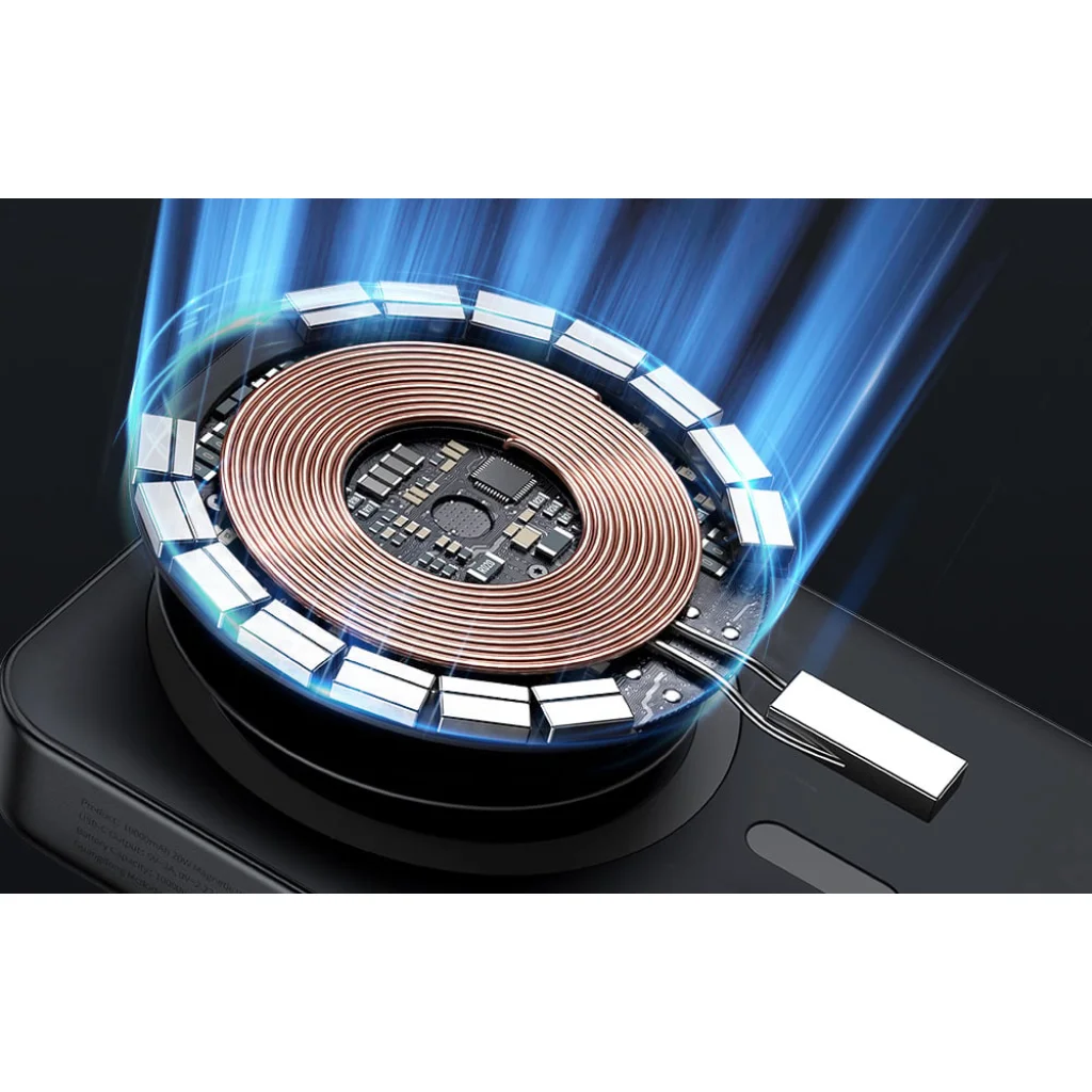 A 10,000mAh kapacitású powerbank kompakt kialakítást és funkcionalitást ötvöz, gyors és biztonságos töltést biztosítva mind vezetékes, mind vezeték nélküli módban. Mágneses rögzítése, masszív kialakítása és különböző okostelefon modellekkel való kompatibilitása révén kényelmet biztosít a mindennapi használat során. Emellett a hőmérséklet-figyelés és a túlmelegedés elleni védelem biztosítja a biztonságos működést bármilyen helyzetben.