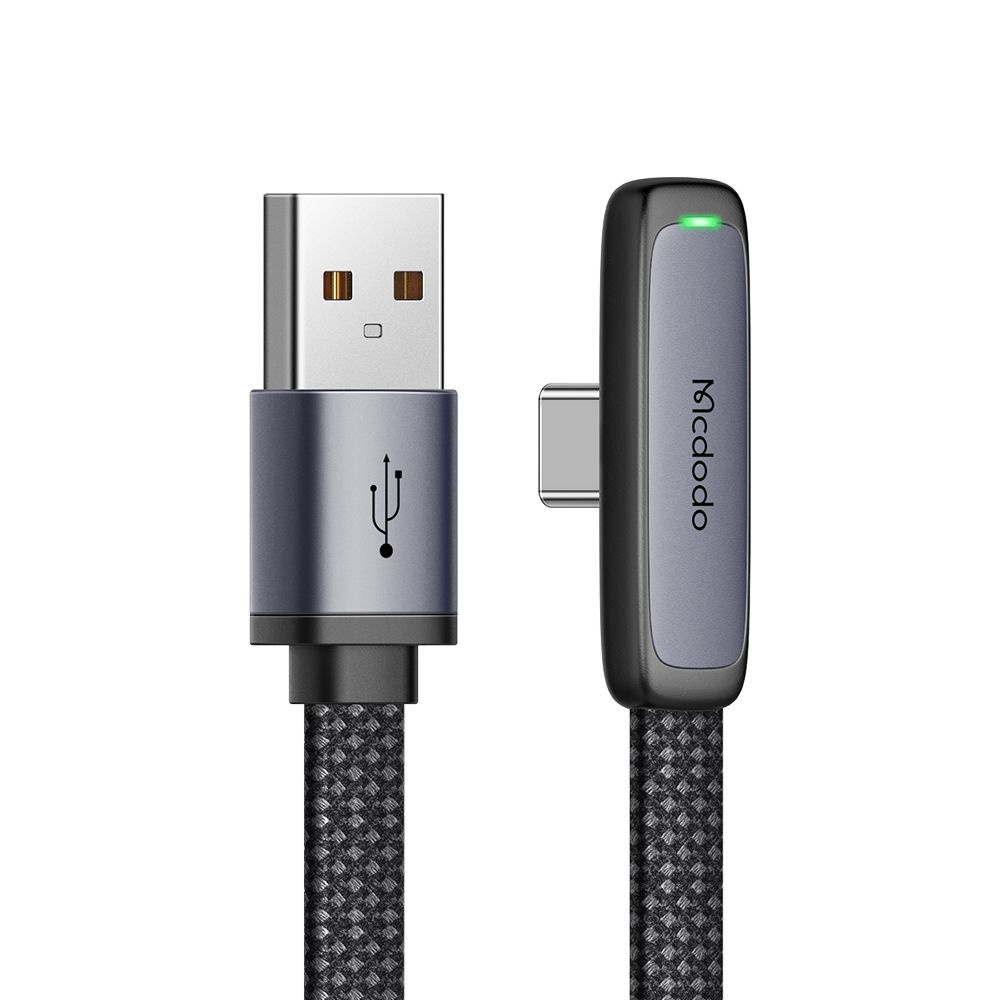Mcdodo USB-C to USB-A 90 fokos kialakítás, 100W, LED kijelző, 1.2m adatkábel fekete (CA-3340)
