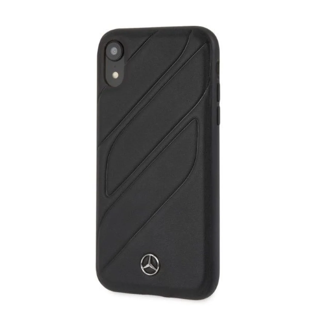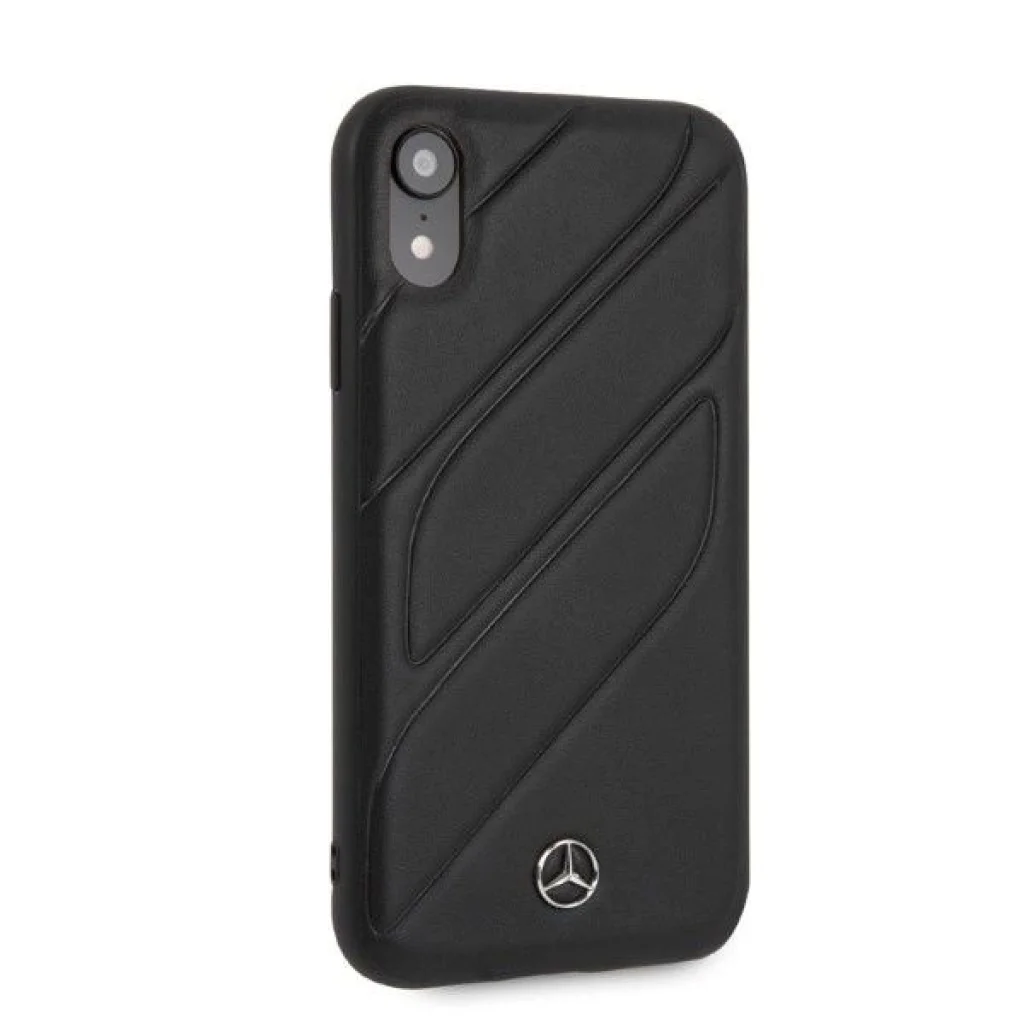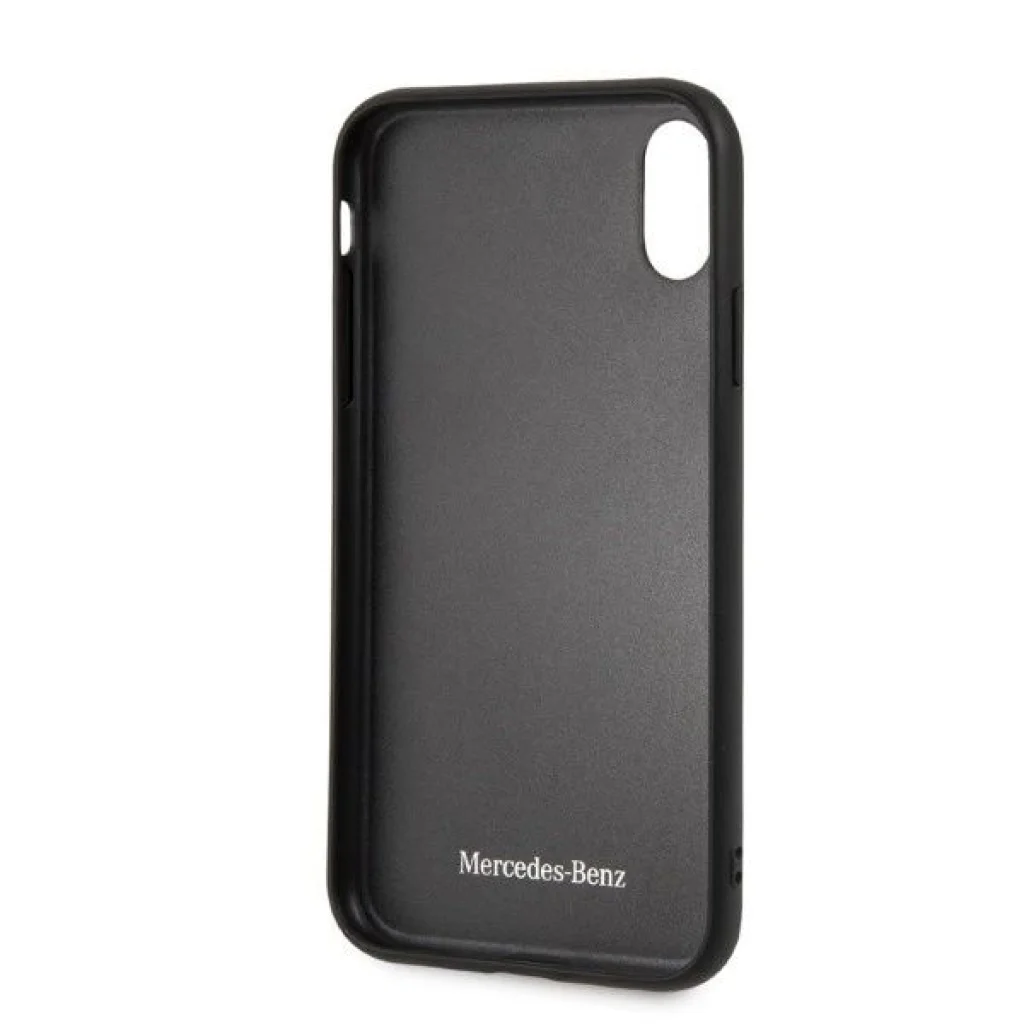 - Bőrtok, amelyet egy fémes Mercedes-Benz logó és minimalista minta díszít, háromdimenziós hatással