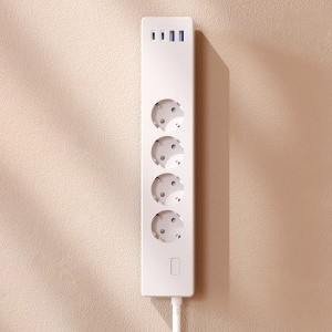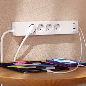 A szalag négy klasszikus konnektor és négy USB-port kombinációja, így nincs szükség több töltőre és hosszabbítóra. Ez egy kényelmes és esztétikus megoldás, amely segít megszervezni az íróasztal vagy az ágy melletti helyet.