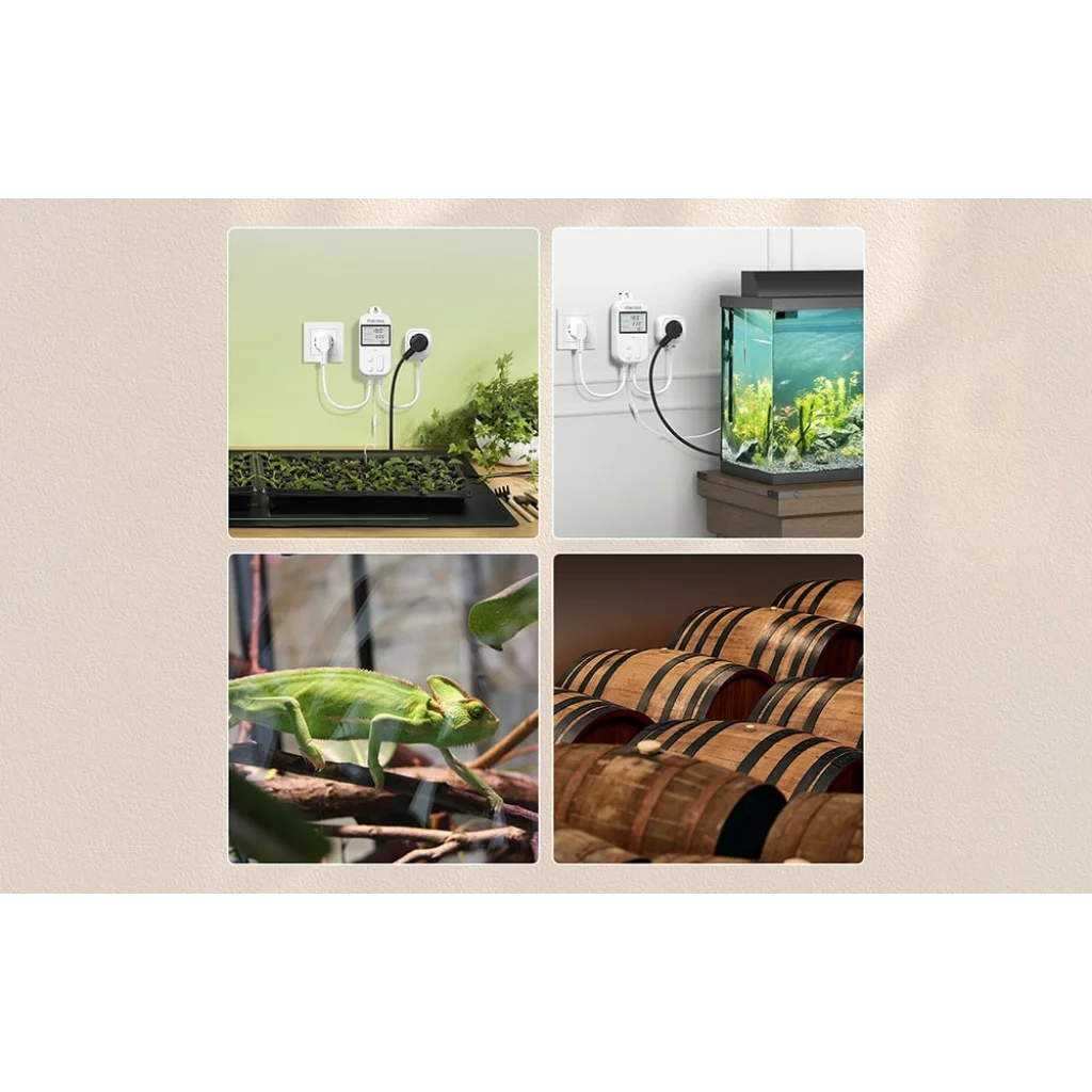 A Meross MTS960HK termosztatikus aljzat pontos hőmérséklet-szabályozást kínál -30°C és 110°C között, ±0,5°C pontossággal. A készülék támogatja a fűtési és hűtési üzemmódokat is, így számos berendezést, például infravörös fűtőtesteket, ventilátorokat és hűtőszekrényeket támogat. Az időzítő funkciónak és a ciklikus időbeosztásnak köszönhetően a felhasználó a berendezés működését az egyéni igényekhez igazíthatja, élvezve a kényelmet és az energiahatékonyságot. A termék tökéletes lesz lakóterekbe, üvegházakba, akváriumokba, tojáskeltetőkbe vagy fermentáció során.