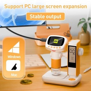 A Mikroszkóp OEM CM5 egy kompakt és hordozható eszköz, amely 2,0 hüvelykes IPS színes kijelzővel és Full HD 1080P videófelbontással rendelkezik, tökéletes a részletes megfigyeléshez különböző alkalmazási területeken. Használható bőrelemzéshez, gyümölcsök, drágakövek, növények vizsgálatához és számos más területen. A 8 integrált LED lámpa tiszta megvilágítást biztosít, a CM5 lehetővé teszi a fényképkészítést és videófelvételt, valamint a PC csatlakozást a valós idejű több személyes megtekintéshez. 2MP, 3MP és 5MP fénykép felbontással, valamint 720P és 1080P videó támogatással éles, élénk képeket nyújt. USB Type-C csatlakozással üzemel, megszüntetve az elemek szükségét, kényelmet és megbízhatóságot kínálva. Az állítható magasságú állvány kényelmes használatot biztosít, így ez a mikroszkóp praktikus és sokoldalú eszköz mind hobbi használók, mind szakemberek számára.