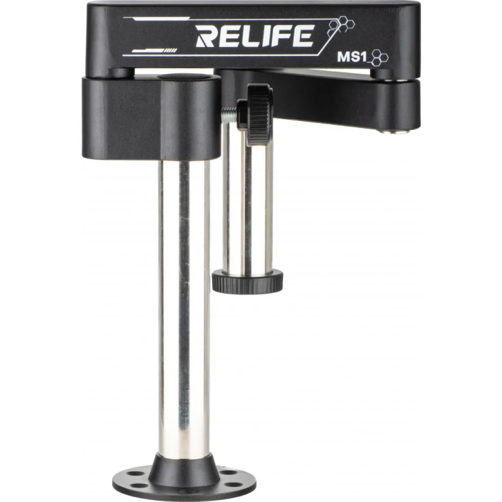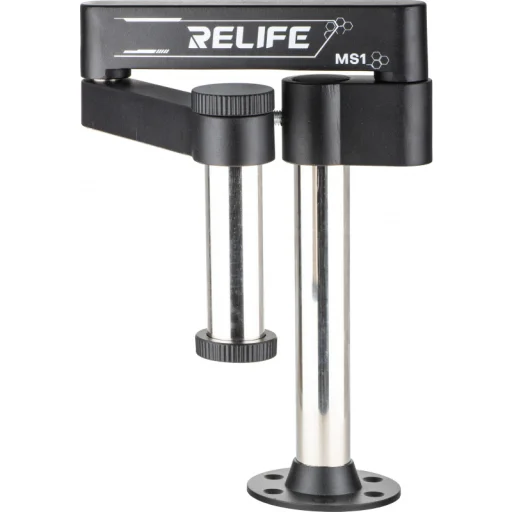 A Relife MS1 állítható mikroszkópkar nagyobb rugalmasságot és stabilitást biztosít bármilyen javítóműhely számára. 360 fokos forgathatóságával és precíziós acél hengeres csapágyazásával szabadon állítható a látószög, megkönnyítve nagyobb tárgyak megfigyelését. Összecsukható és oldalirányban kinyújtható kialakítása helyet takarít meg, lehetővé téve falra, asztalra vagy javítóalapra történő felszerelését, tökéletesen alkalmazkodva a felhasználói igényekhez. Teljes egészében magas precizitású vastag fémből készült, az MS1 garantálja a masszív szerkezetet, erős megtámasztást és a tartós használatot, és kompatibilis a piacon elérhető legtöbb mikroszkóp készlettel.
