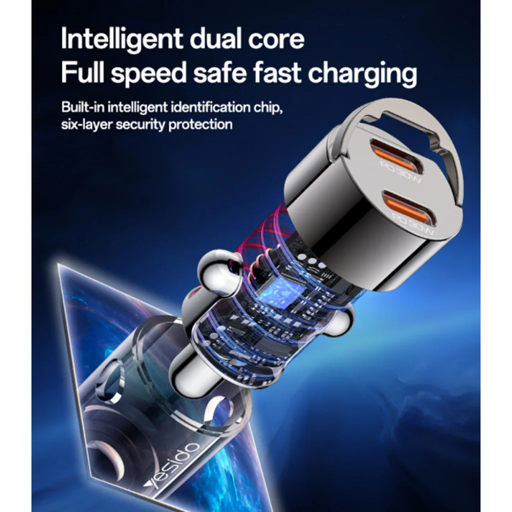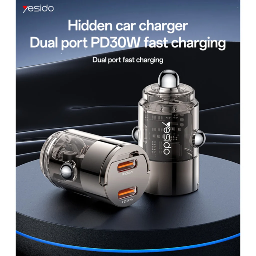 Tapasztalja meg a gondtalan és villámgyors töltést útközben a Yesido Y69 Mini Autós Töltővel! Ez a prémium kategóriás, kettős Type-C porttal rendelkező autós töltő tökéletes választás azok számára, akik egyszerre több eszközüket is gyorsan és biztonságosan szeretnék feltölteni utazás közben. A stílusos fekete színű, részben átlátszó kialakítású töltő nemcsak rendkívül funkcionális, hanem elegánsan illeszkedik autója belső terébe is, észrevétlen maradva.