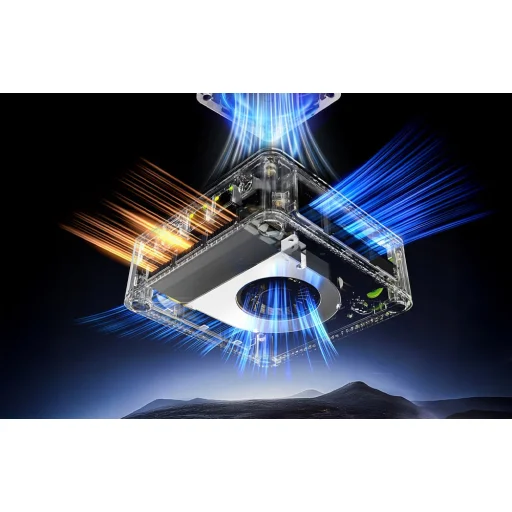 A GMKtec M5 Ultra stabil és hatékony működéséért a Dual Surround Cooling Vents és egy deszkaszerű alumínium hűtőbordával ellátott hűtőrendszer felel. Az intelligens ventilátorsebesség-szabályozás fenntartja az alkatrészek optimális hőmérsékletét, így nagy terhelés mellett is csendes működést biztosít. A porálló kialakítás védi a készülék belsejét, meghosszabbítva annak élettartamát és fenntartva a maximális SSD és RAM teljesítményt.