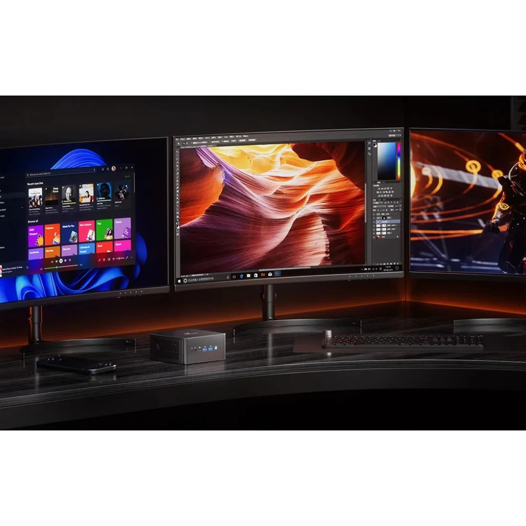 Fejlett grafika és többképernyős támogatás: Az integrált AMD Radeon™ 780M grafikus chip támogatja a kiváló minőségű szórakozást, így élvezheti a fejlett multimédiát és a játékokat. A mini-PC támogatja akár négy képernyő egyidejű csatlakoztatását, ideális a kibővített munkaterületet igénylő szakemberek számára.
