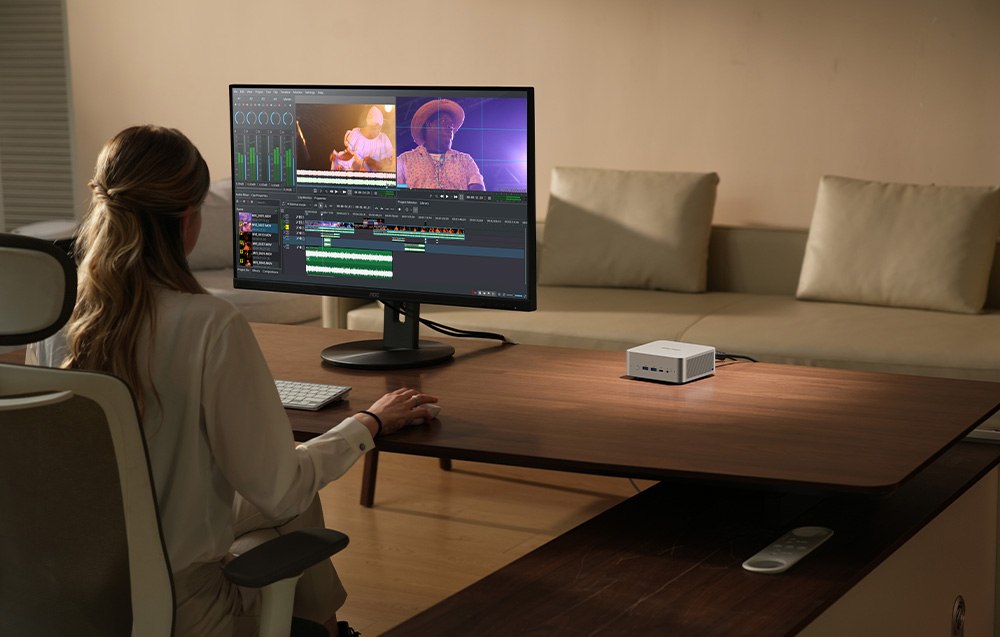 A Minis Forum X1-255 egy nagy teljesítményű PC, amely egyaránt alkalmas irodai munkára és igényesebb feladatokra. Nagy teljesítményű AMD Ryzen™ 7 processzorral és számos csatlakozóval felszerelve lehetővé teszi a konfiguráció szabad testreszabását. Kompakt méreteinek (128 x 126,5 x 52,5 mm) köszönhetően gyakorlatilag bárhol elfér – íróasztalon, monitor mögött vagy szűkös munkaterületen.