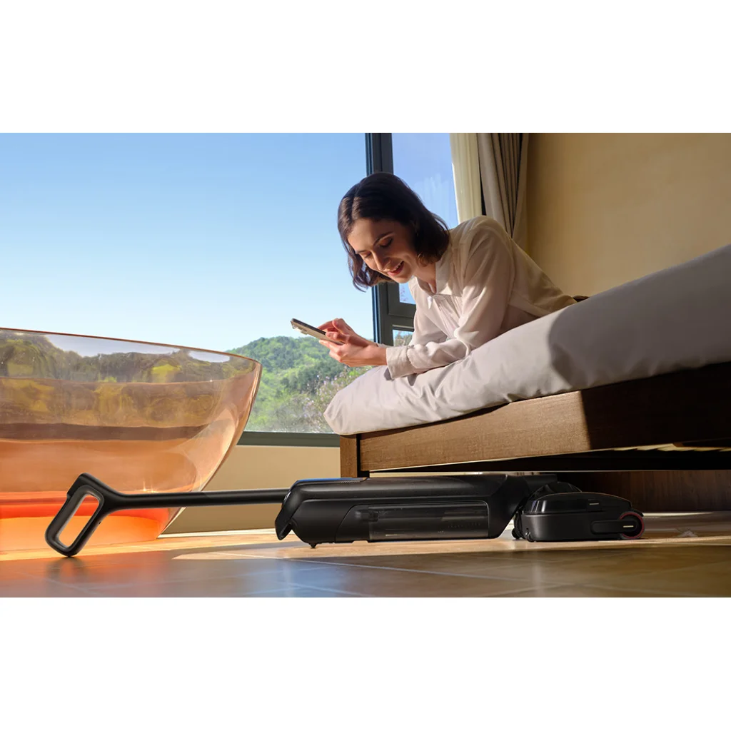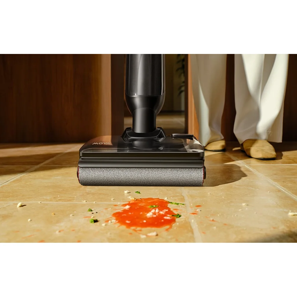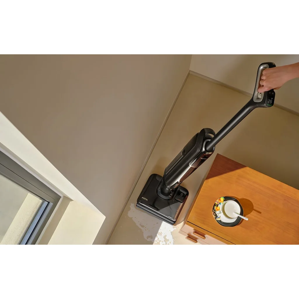 Az akár 22 000 Pa szívóerőnek köszönhetően a MOVA M50 hatékonyan távolítja el a kiömlött folyadékot, port, morzsákat és a beszáradt foltokat is. Működés közben a készülék körülbelül 20 N nyomást gyakorol a padlóra, ami növeli a súrolás hatékonyságát és megkönnyíti a makacs szennyeződések eltávolítását. A Lie-Flat Reach kialakításnak köszönhetően a porszívó szinte teljesen laposra, akár 180°-ig lefektethető, így könnyedén befér akár 14 cm magas bútorok alá is. Ennek köszönhetően az ágyak, kanapék és szekrények alatti területek is alaposan tisztíthatók anélkül, hogy le kellene hajolni vagy el kellene mozdítani a bútorokat.