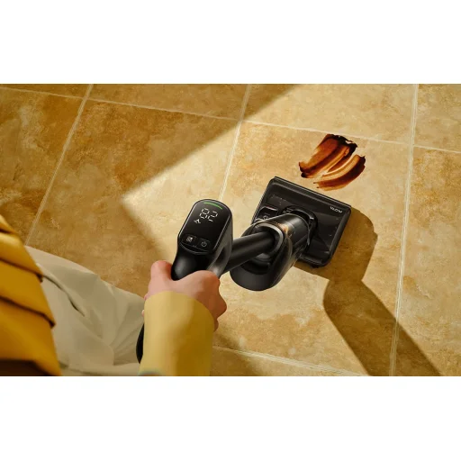 Padlón történő mozgatás közben az érzékelt súly mindössze körülbelül 610 g, ami rendkívül könnyű és sima kezelhetőséget biztosít. A 90°-ban elforgatható kefe megkönnyíti a bútorlábak körüli és a szűk helyeken történő manőverezést, így a takarítás kevésbé megterhelő.