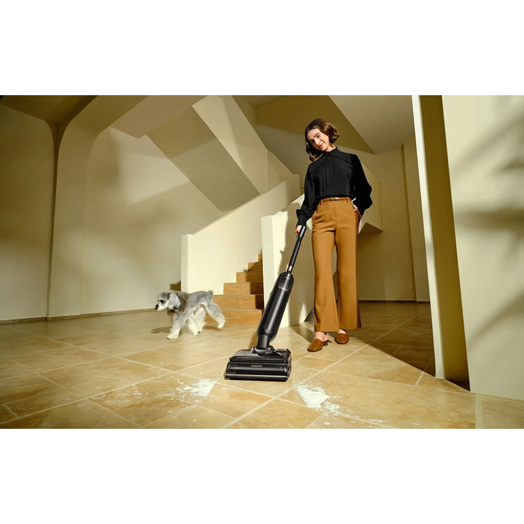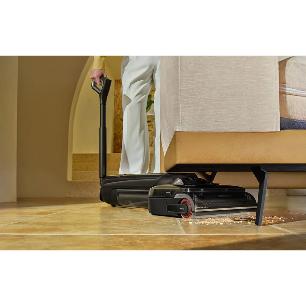 A MOVA M50 Ultra vezeték nélküli álló, felmosó porszívó a 22 000 Pa szívóteljesítményt felmosó funkcióval kombinálja, hogy gyorsabbá és hatékonyabbá tegye a takarítást. Az EdgeCoverage™ technológiával a készülék alaposan tisztít a széleken, az automatikus folyadékadagolással pedig csíkok nélkül, egyszerűen eltávolítható a szennyeződés. A kefe forró vizes öntisztító rendszere és a gyors szárítás tisztán tartja a készüléket, a praktikus kialakításnak köszönhetően pedig könnyedén porszívózhat a bútorok alatt anélkül, hogy le kellene hajolnia. Emellett az intelligens mozgástámogatás a padló típusától függetlenül simává és kényelmessé teszi a porszívó vezetését.