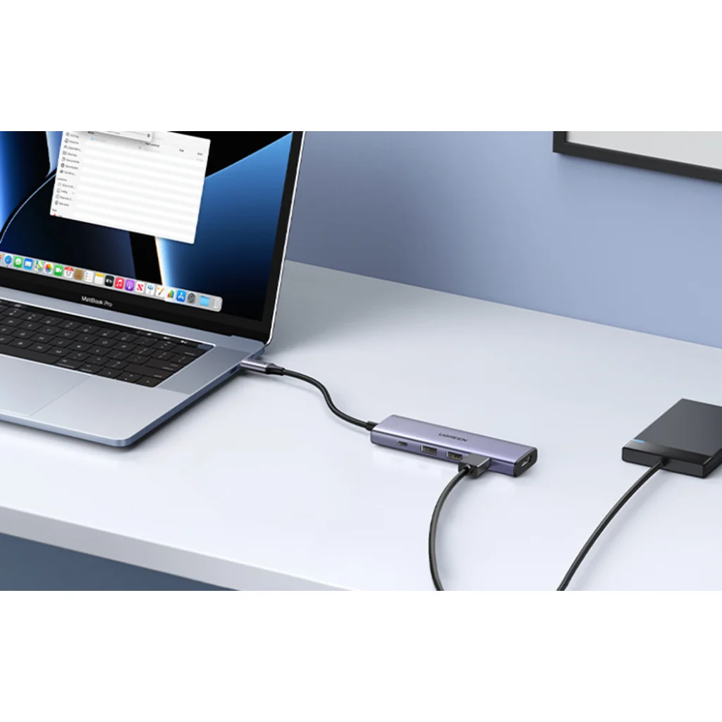 Ugreen 5 az 1-ben multifunkciós USB-C HUB - 3x USB 3.2 Gen 1 / HDMI 1.4 4K 30Hz / USB-C PD 100W szürke (CM511) A laptopodon vagy számítógépeden nincs elég port, amit a mindennapi munka vagy szórakozás során használhatnál? Hiányoznak a különböző szabványú kiegészítő csatlakozók? Ha igen, ez az Ugreen márkájú kütyü tökéletes választás számodra. Egyetlen eszközzel számos további portot biztosítasz, amelyeket gond nélkül használhatsz. Ezáltal új lehetőségeket fedezhetsz fel a számítógépedben.
