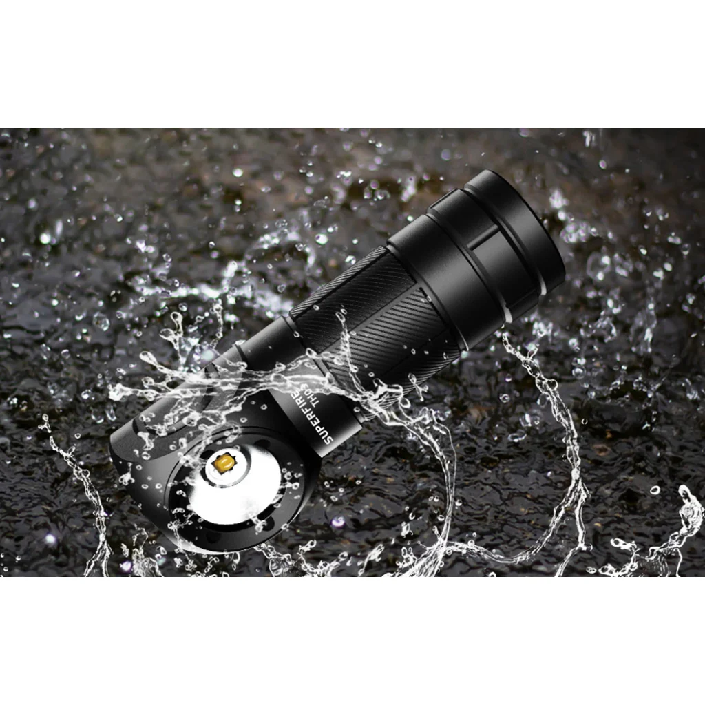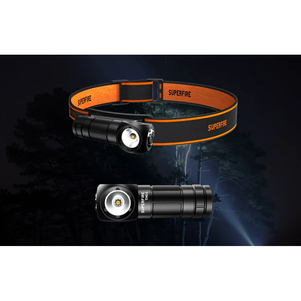 A Superfire TH03 zseblámpa kézi és fejlámpa funkciókat egyesít, ezáltal rendkívül sokoldalú eszköz. Kis méretének (80,5 x 27 x 24 mm) és mindössze 58 grammos súlyának köszönhetően könnyen hordozható, és nem jelent terhet. A szilikon szalaggal ellátott rugalmas rögzítőrendszer lehetővé teszi, hogy a zseblámpát biztonságosan a fejre lehessen rögzíteni, így alkalmas például hegymászásra, kempingezésre és javításokra is. Emellett a TH03 zseblámpa 180° állítható fényerősséggel rendelkezik, amely megszünteti a holtpontokat, és teljes körű ambient világítást biztosít.