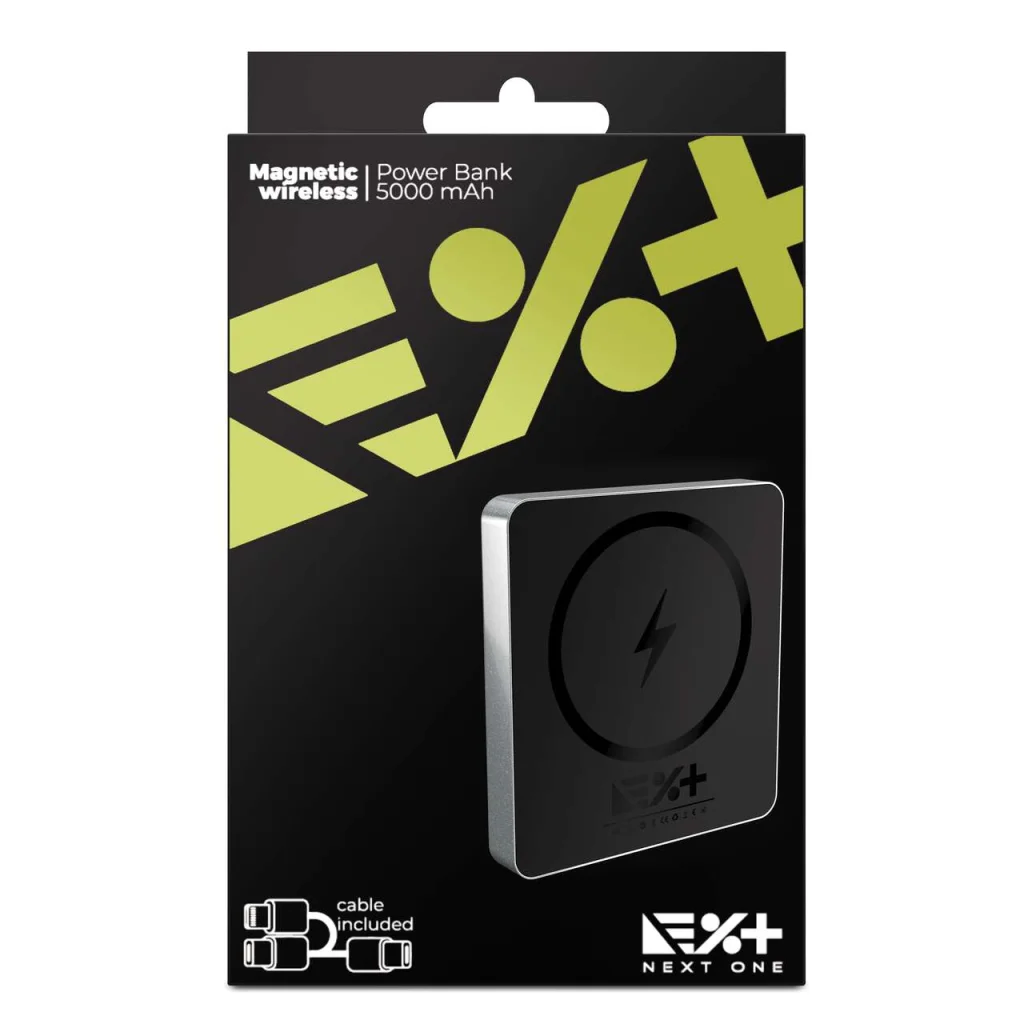 A NEXT ONE által tervezett MagSafe PowerBank egy többfunkciós töltési kombináció, amely 2 az 1-ben elemből áll: 15 W-os power bank + vezeték nélküli töltő. A NEXT ONE MagSafe töltő leegyszerűsíti a maximális vezeték nélküli töltést, kapacitása pedig 5000 mAh. Az iPhone hátuljához rögzítve a tökéletesen elhelyezett mágnesek akár 15 W vezeték nélküli töltést biztosítanak.