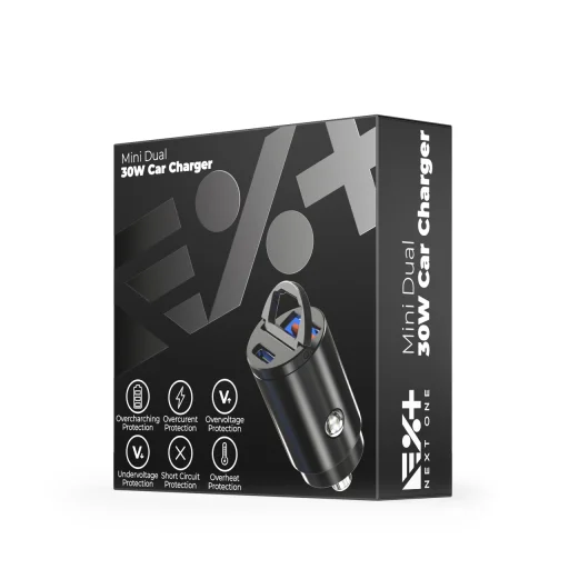 A NEXT ONE által tervezett 30 W-os PD3.0 Mini Charger gyorsan táplálja Apple készülékét, emellett prémium, kompakt kialakítása is kiegészíti autója műszerfalát.