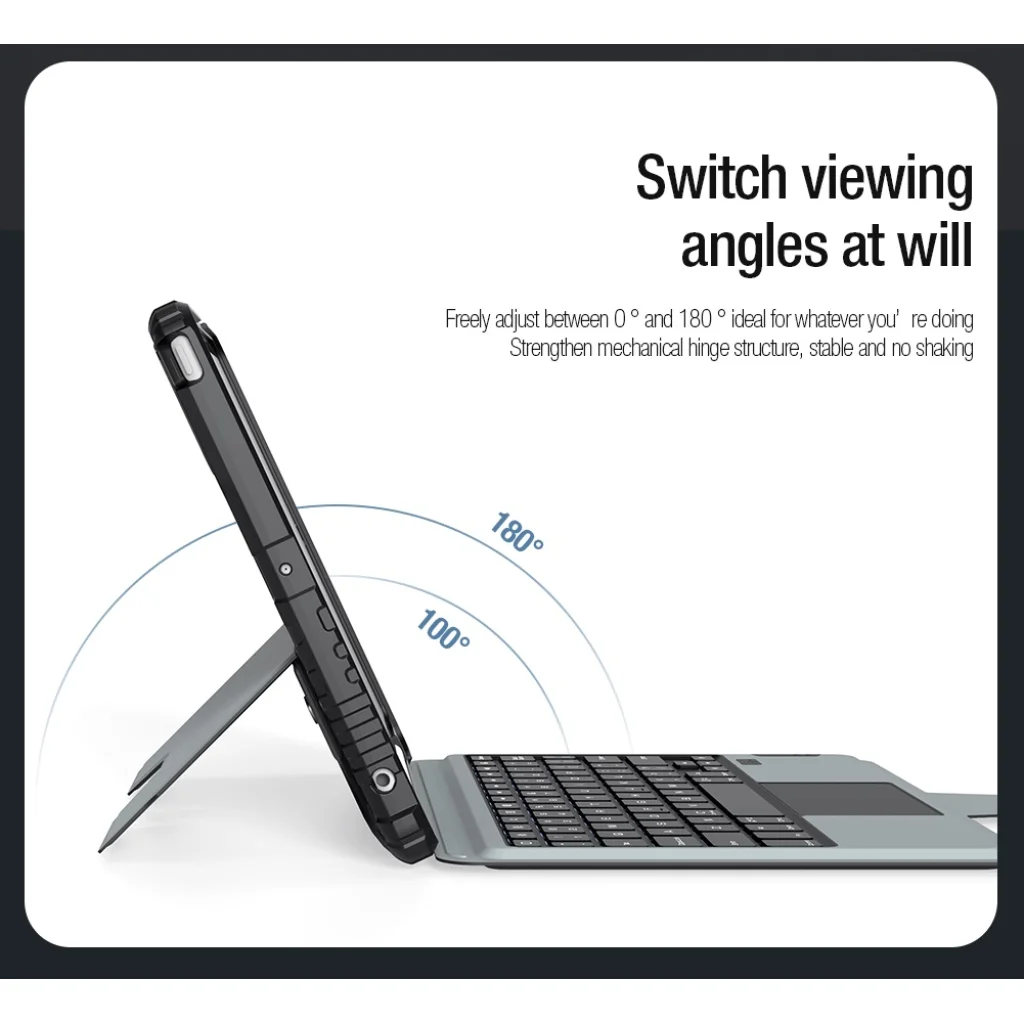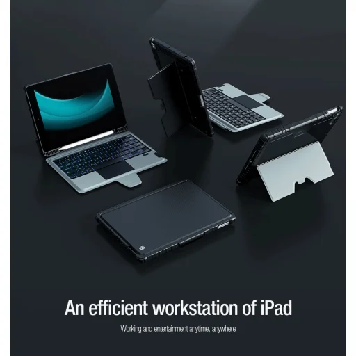 A Nillkin Bumper Combo billentyűzetes tok egy többfunkciós tablet védőtok, amely háttérvilágított billentyűzettel, automatikus töltésű Apple Ceruza foglalattal és folyamatosan állítható tablet szöggel rendelkezik. Ha szeretné tabletjét mobil irodaként használni, vagy nehéz laptop helyettesítésére, vagy csak egyszerűen élvezni szeretné a tablet használatát, a Nillkin Bumper Combo védőtok kifejezetten Önnek való.