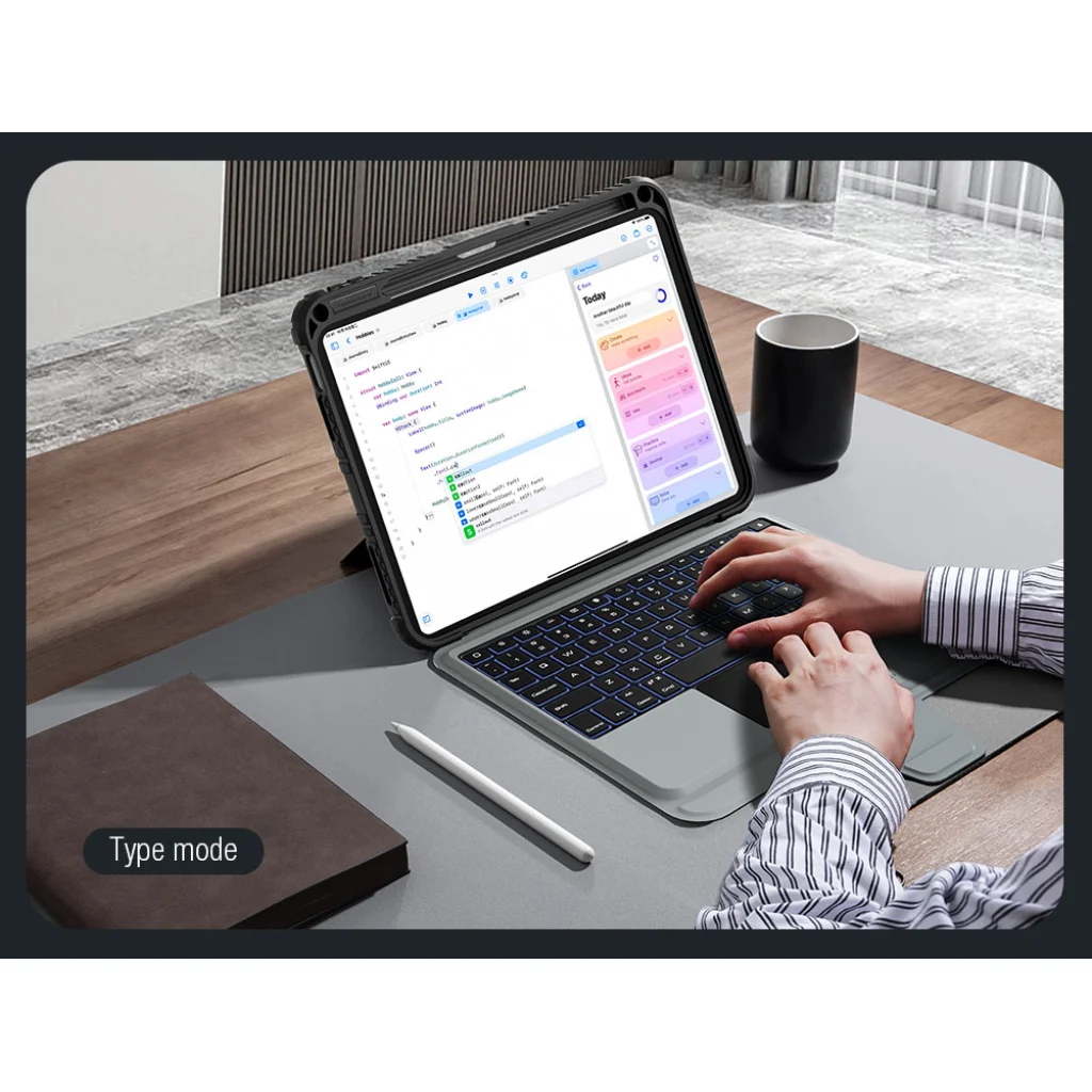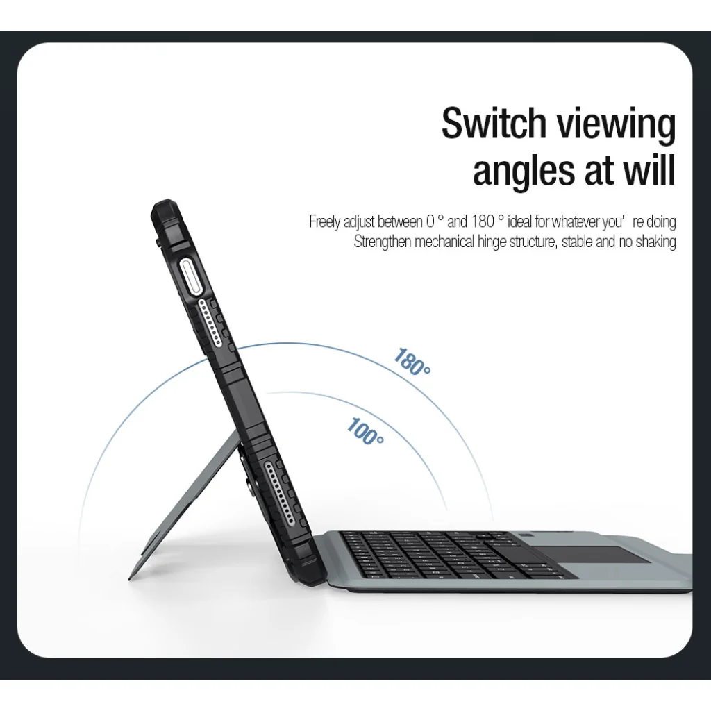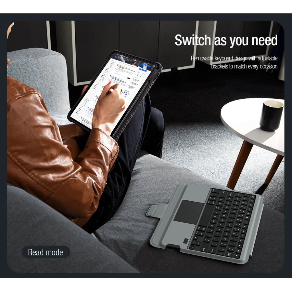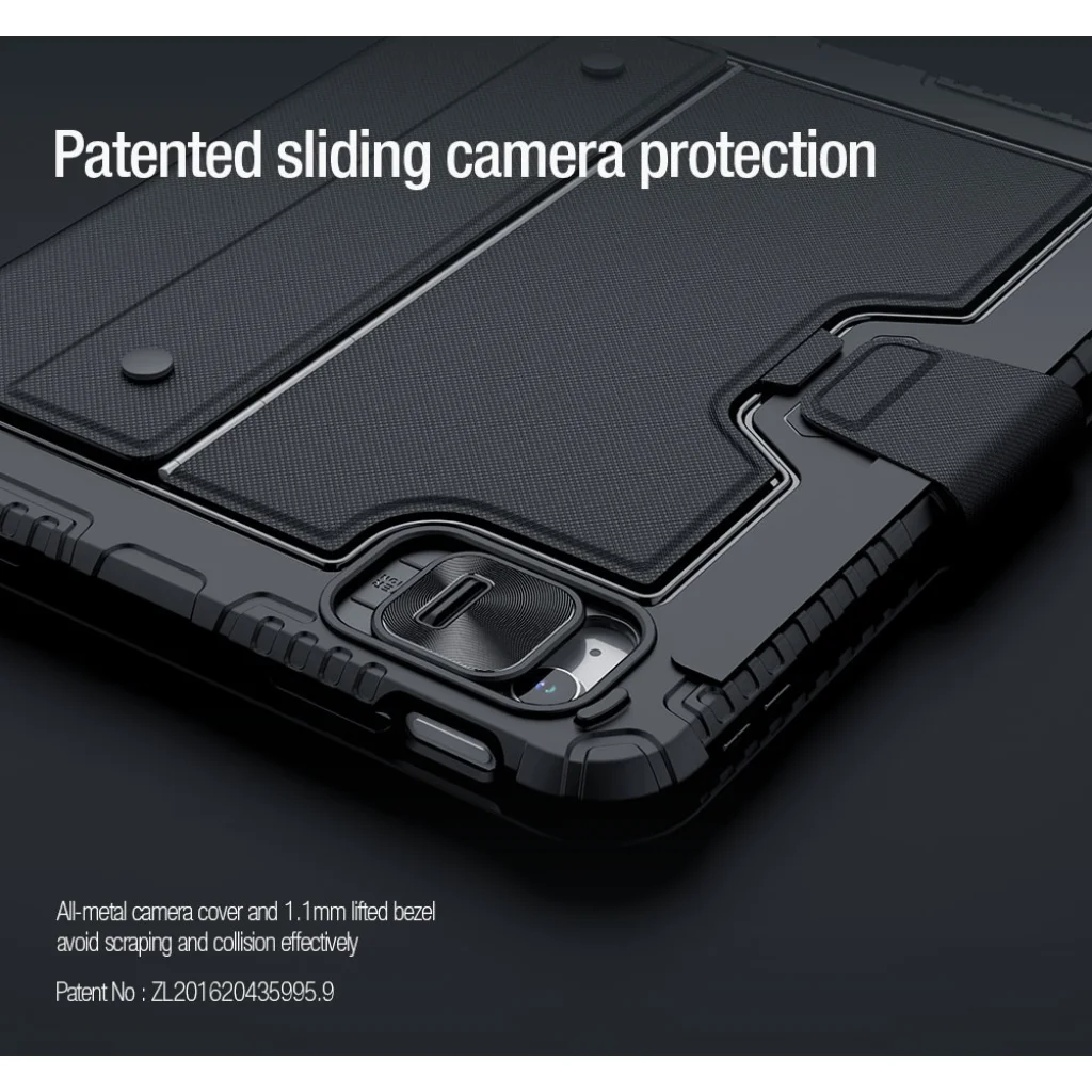 A Nillkin Bumper Combo Keyboard Case egy sokoldalú tablet védőtok, amely háttérvilágítással ellátott billentyűzettel, Apple Pencil töltési lehetőséggel rendelkező slot-tal, és folyamatosan állítható táblagépszöggel rendelkezik.