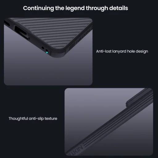 A részletekre való odafigyelés a Nillkin CamShield PRO tok minden aspektusában megmutatkozik. Az 1:1 arányú precíz öntési technológia és az pontos kivágások biztosítják a vezérlőelemek és a szükséges csatlakozók akadálytalan hozzáférését. A 3D gombok kiváló tapintási visszajelzést adnak. A mikro-íves élek nemcsak kényelmes fogást biztosítanak, hanem kompatibilisek a legtöbb kijelzővédő fóliával is. A gondosan megtervezett csúszásgátló textúra növeli a fogás biztonságát, míg az elvesztés elleni zsinórlyuk lehetőséget ad a további személyre szabásra és biztonságra.
