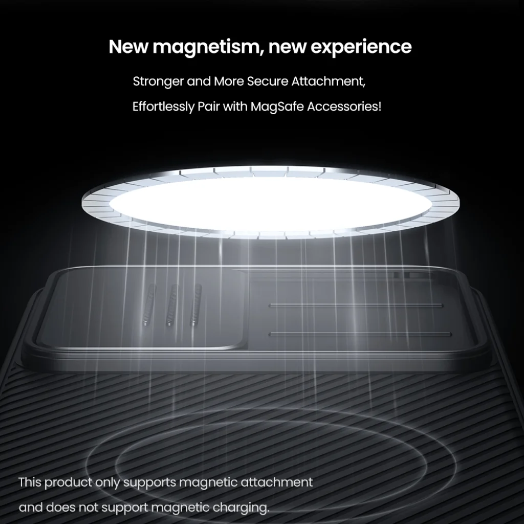 A Nillkin CamShield PRO Mágneses tok egyedisége a csúsztatható kameravédő fedél és az integrált mágnes.