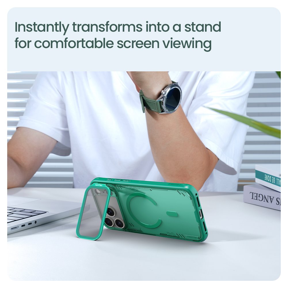 A Nillkin Iceblade Prop mágneses egy egyedülálló tok, amely megújuló erőforrásokból készült, felhajtható kamera lencse fedéllel és integrált mágnessel.