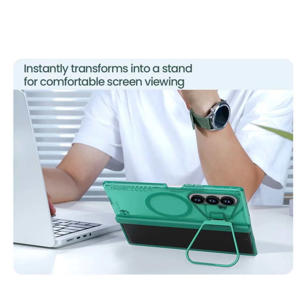 A Nillkin Iceblade Prop mágneses tok egy különleges védőtok, amely megújuló erőforrásokból készült, felhajtható kameravédővel és beépített mágnessel.