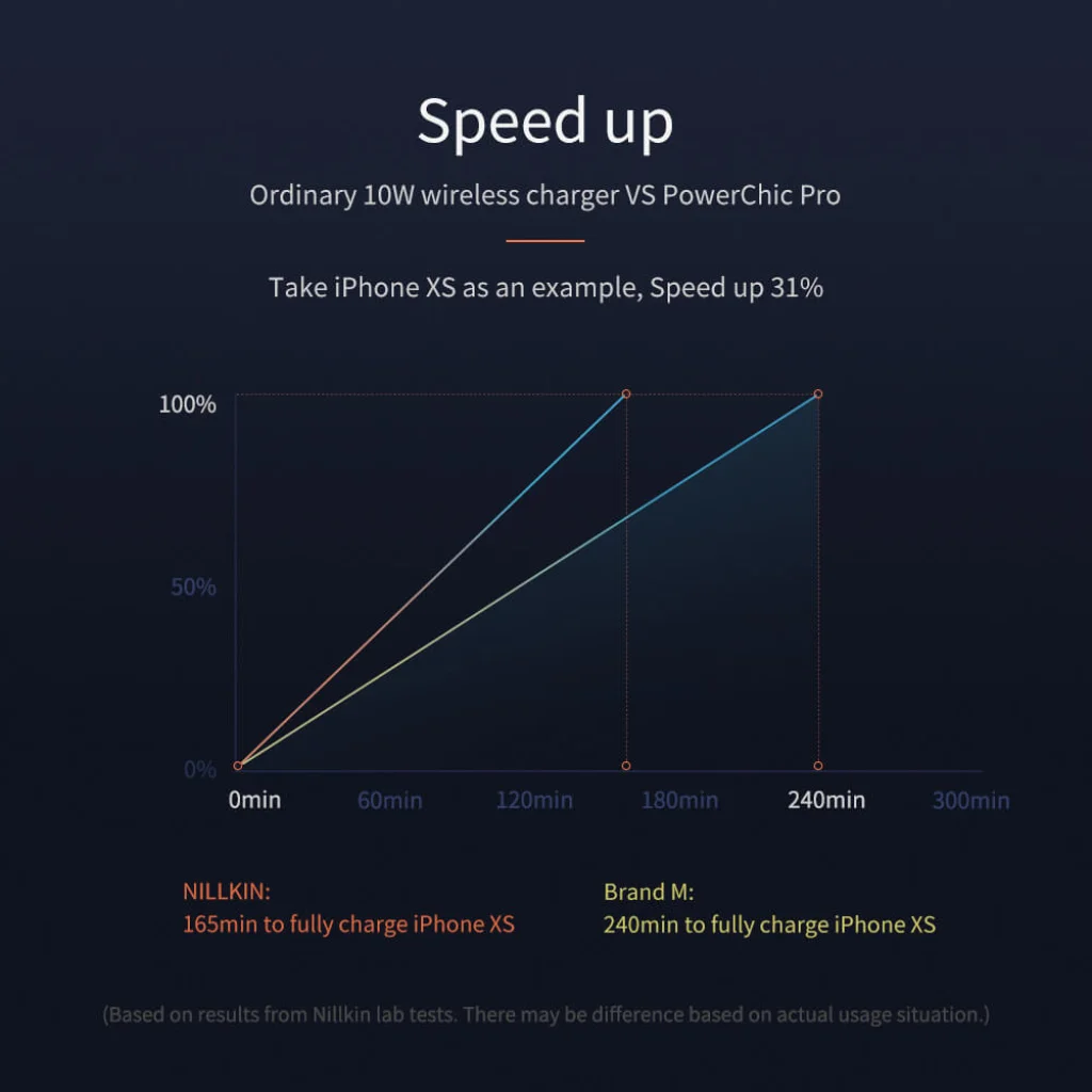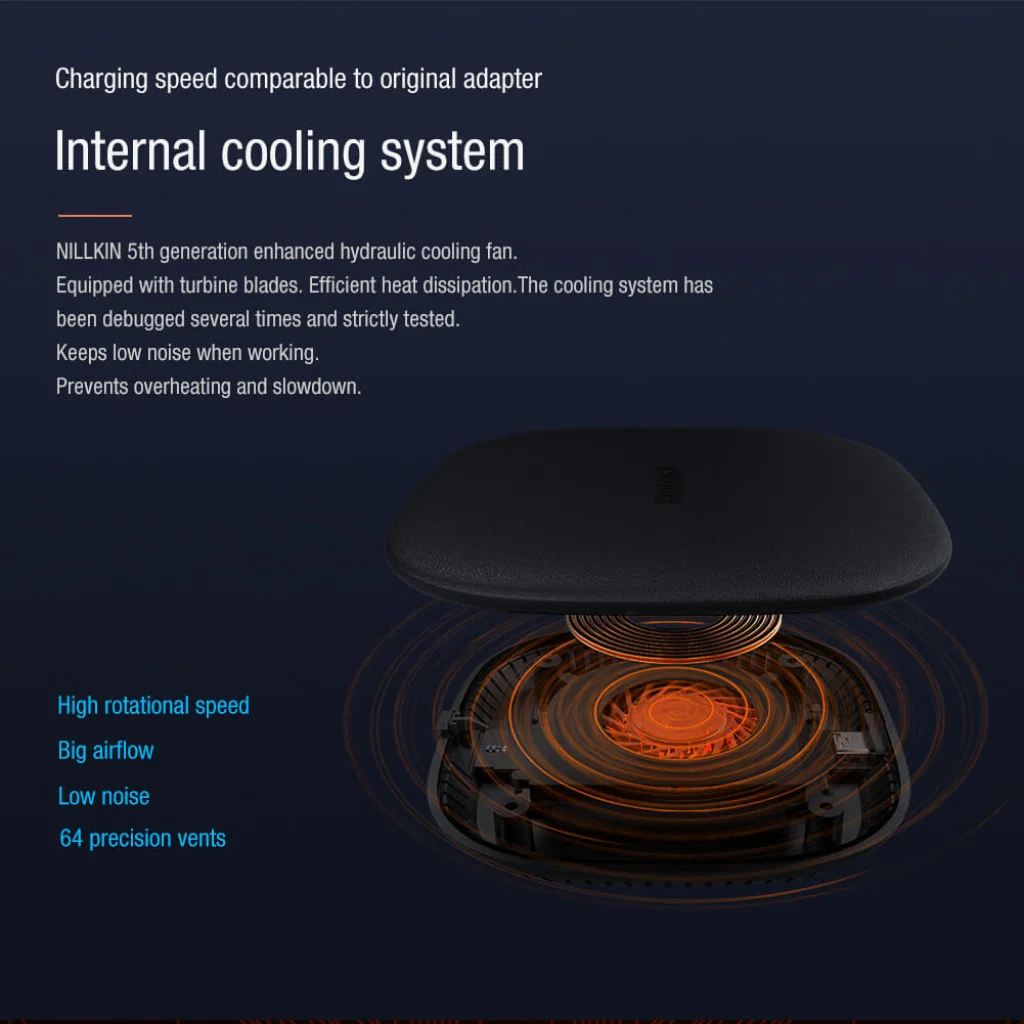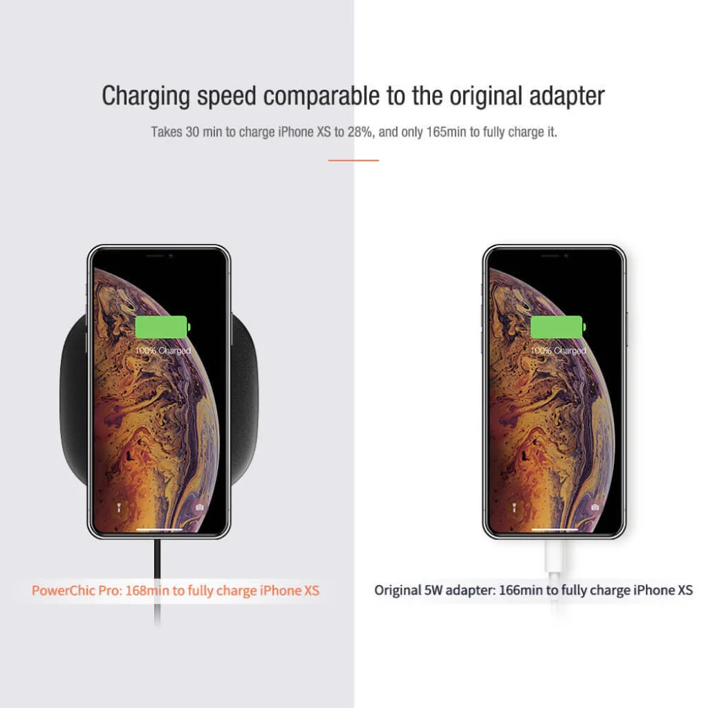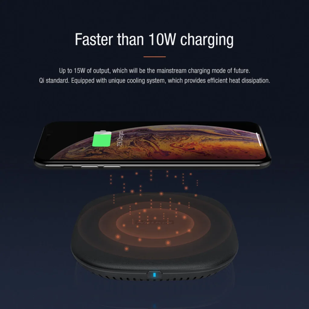 A NILLKIN PowerChic Pro vezeték nélküli gyorstöltő 15W, 10W, 7,5W, 5W töltési módokat támogat.