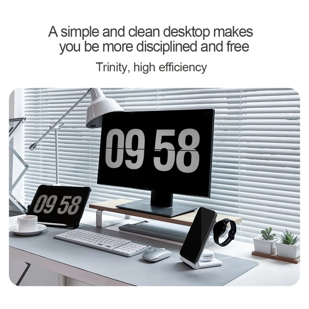 Az állvány úgy van tervezve, hogy a telefon és az óra mindig szem előtt legyen. Ezt értékelni fogod mind a munkaasztalodon, mind az éjjeliszekrényen vagy otthon a polcon.