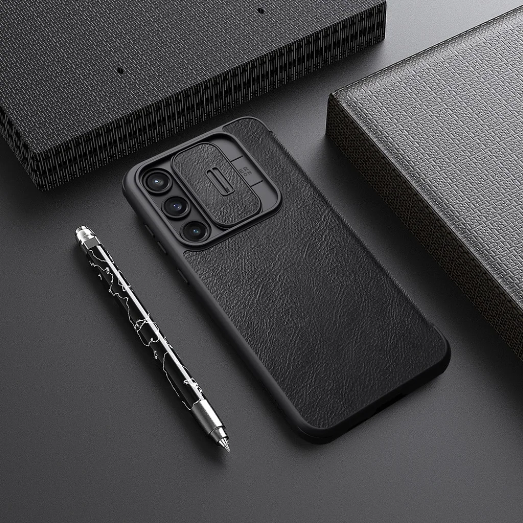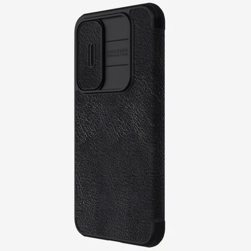 A Nillkin QIN Book PRO tok kiváló minőségű PU bőrből készült, oldalra nyíló, mint egy könyv, és a klasszikus QIN Book tokhoz képest egy tolókameravédő fedéllel is el van látva.