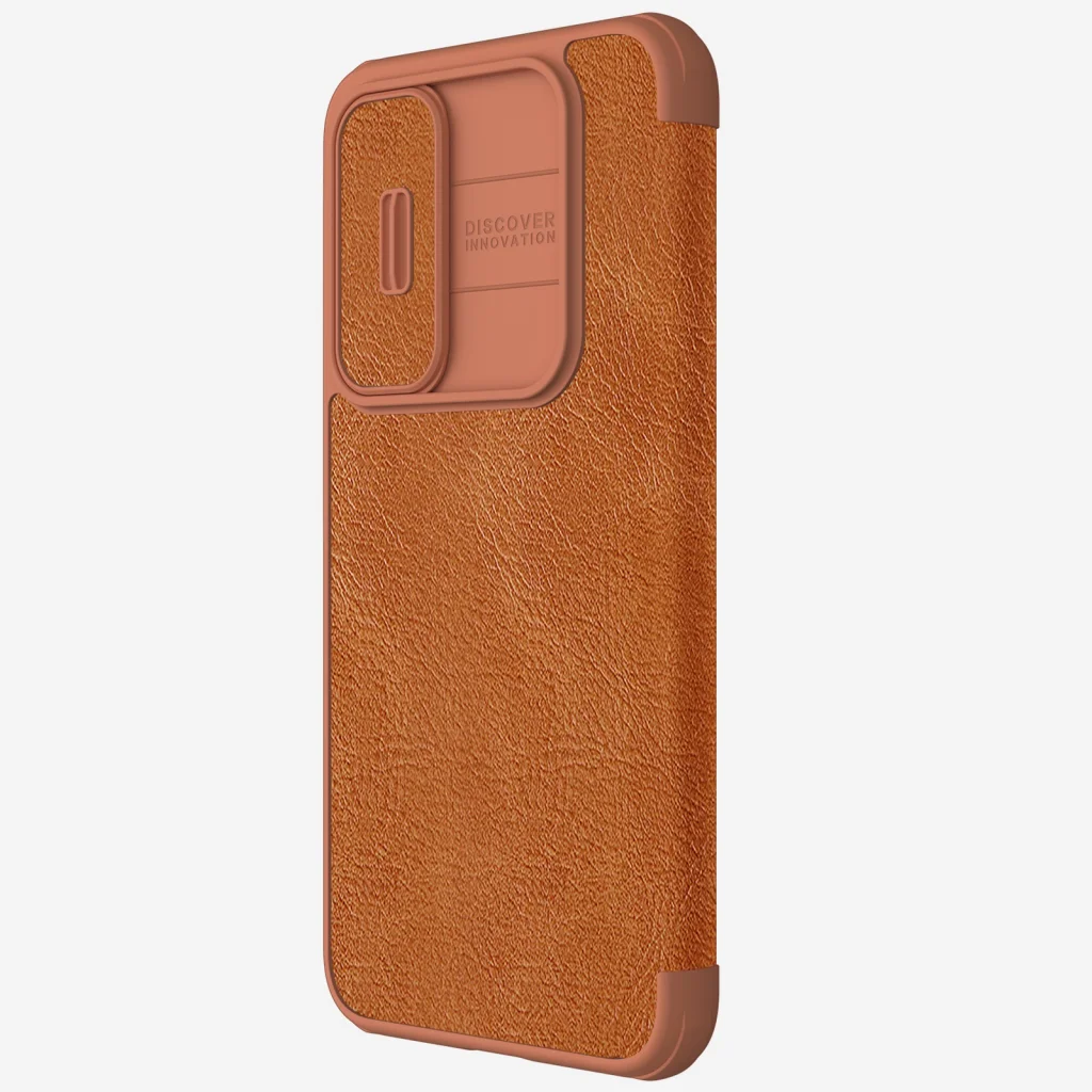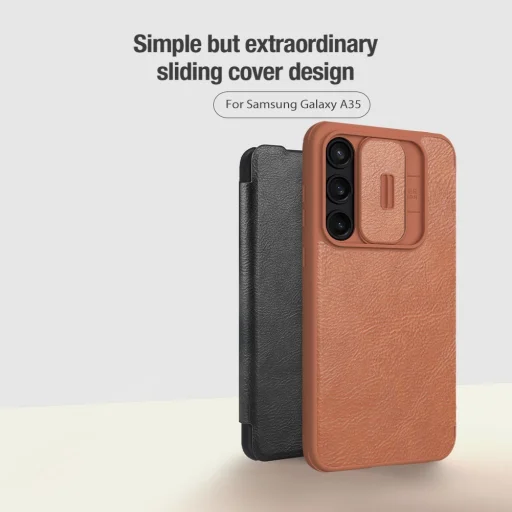 A Nillkin QIN Book PRO tok kiváló minőségű PU bőrből készült, oldalra nyílik, mint egy könyv, és a klasszikus QIN Book formához képest egy csúszó kamera lencsevédővel is ellátták.