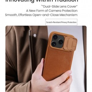 A Nillkin QIN Book PRO tok kiváló minőségű PU bőrből készült, könyvként oldalra nyílik, és a klasszikus QIN Book-kal szemben egy csúsztatható kamera lencsevédővel is fel van szerelve.
