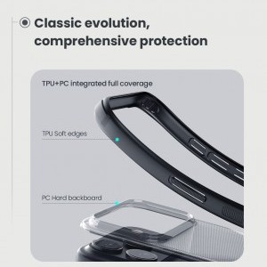 Kemény és tartós műanyagból áll a hátsó részen, míg a szélei TPU puha műanyagból készültek.