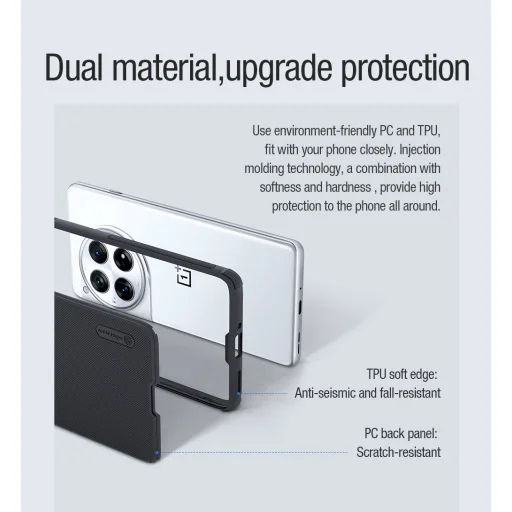 Kemény és tartós műanyagból áll a hátulján, valamint TPU puha műanyagból az oldalain.