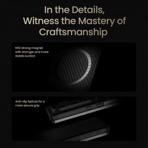 - Aramid szálas bevonat: A tok hátoldalát csúcsminőségű aramid szál borítja, mely a "fény és árnyék ritmusát" megidéző, precíziós szövésével nemcsak kivételes tartósságot, hanem egyedi, elegáns megjelenést is kölcsönöz a készüléknek. Ez az anyag ellenáll a karcolásoknak és a mindennapi igénybevételnek, miközben kiemelkedő strapabírást biztosít.