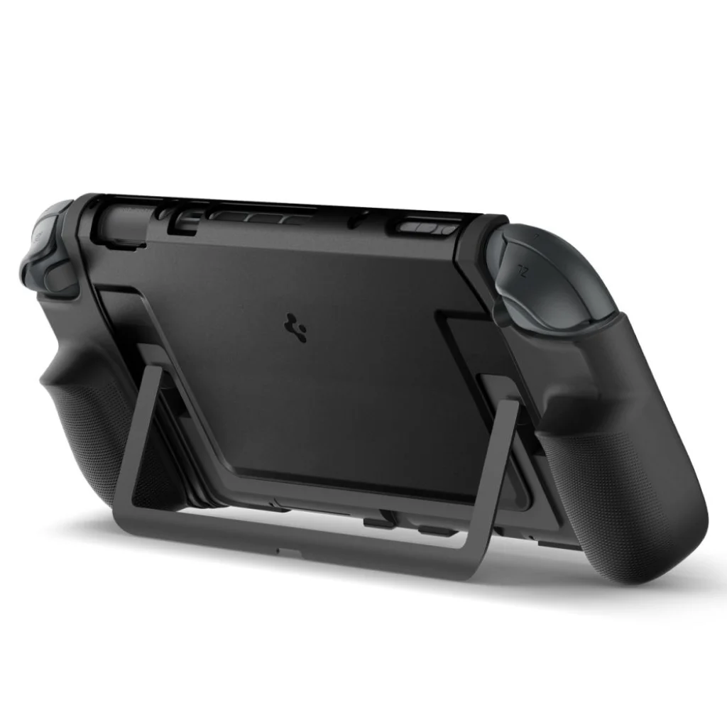 A Spigen Dual Grip tok ideális megoldás a játékosok számára, akik értékelik a kényelmet és a védelmet. Kiváló minőségű PC és TPU anyagból készült, tartósságot és ellenállóságot biztosít a sérülések ellen. Az ergonomikus, dupla fogás kényelmet garantál a hosszú játékülések alatt. A precíz kivágások révén teljes hozzáférést biztosít a joystickokhoz, gombokhoz, ravaszokhoz, D-padhoz, játékkártya nyíláshoz, hangszórókhoz és töltőporthoz. Az integrált állvány és dokkolóállomás is könnyedén használható a tok eltávolítása nélkül.