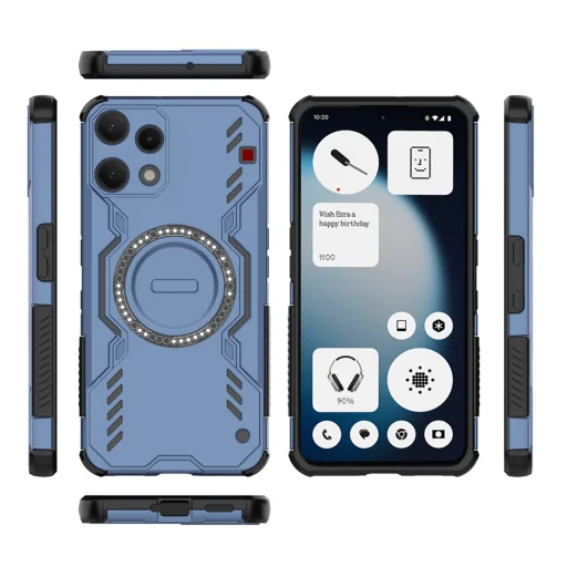 A modern, futurisztikus megjelenésű tok elegáns kék színben kapható, amely kiemeli Nothing Phone (3a) Lite telefonjának egyedi stílusát. A robusztus kialakítás ellenére a tok karcsú marad, és nem ad felesleges tömeget vagy vastagságot a készülékhez, így könnyedén elfér zsebben vagy táskában.