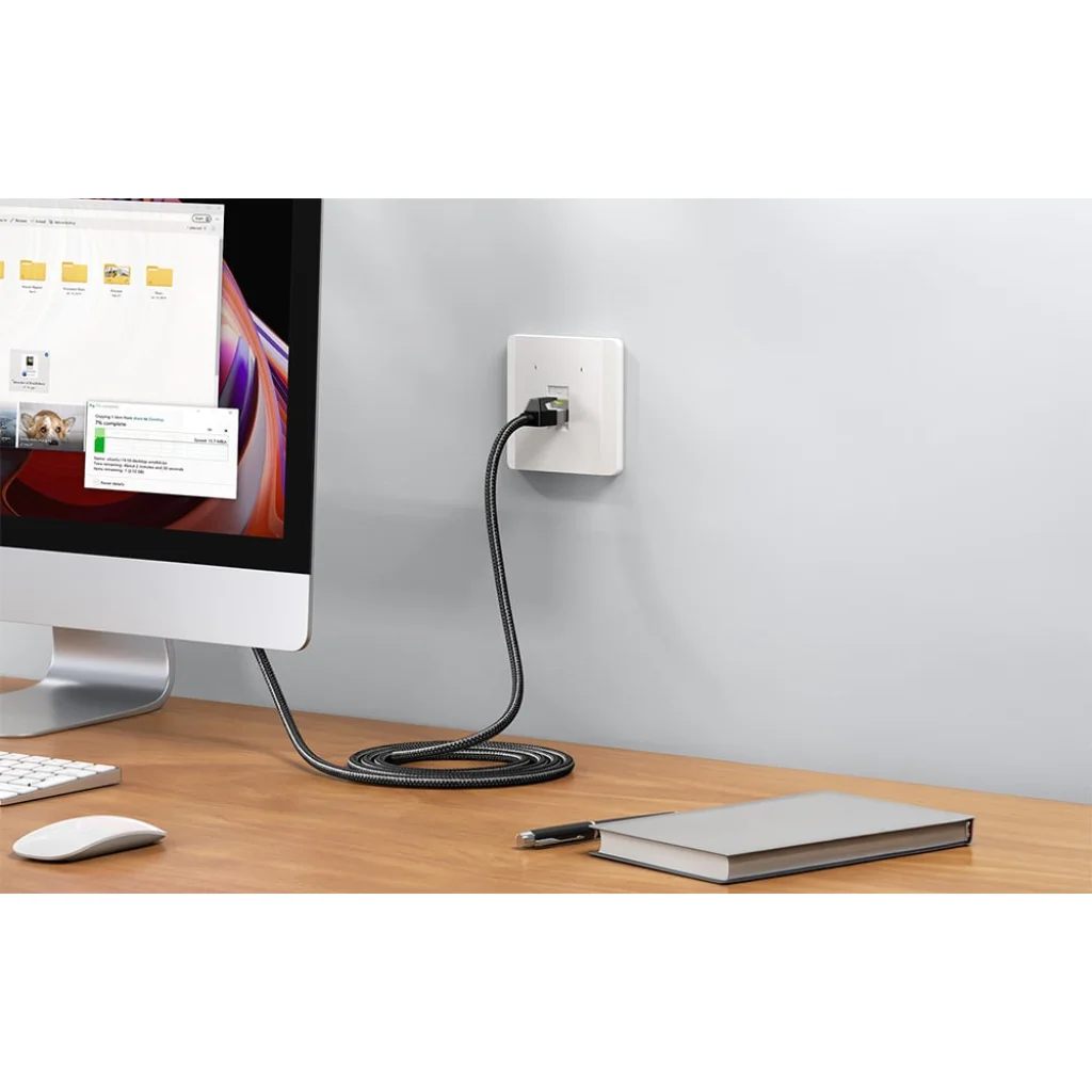 Az Ugreen NW150 egy 7. kategóriás RJ45 hálózati kábel, amelyet gyors és stabil adatátvitelre terveztek igényes otthoni és üzleti hálózatokban. Akár 10 Gbps sávszélességet és 600 MHz frekvenciatartományt is támogat, így teljes mértékben kihasználhatja a routerek és a száloptikai kapcsolatok képességeit. Ez a megoldás azoknak, akik maximális teljesítményt várnak el online játékok, 4K streamelés vagy nagy fájlok kezelése során.