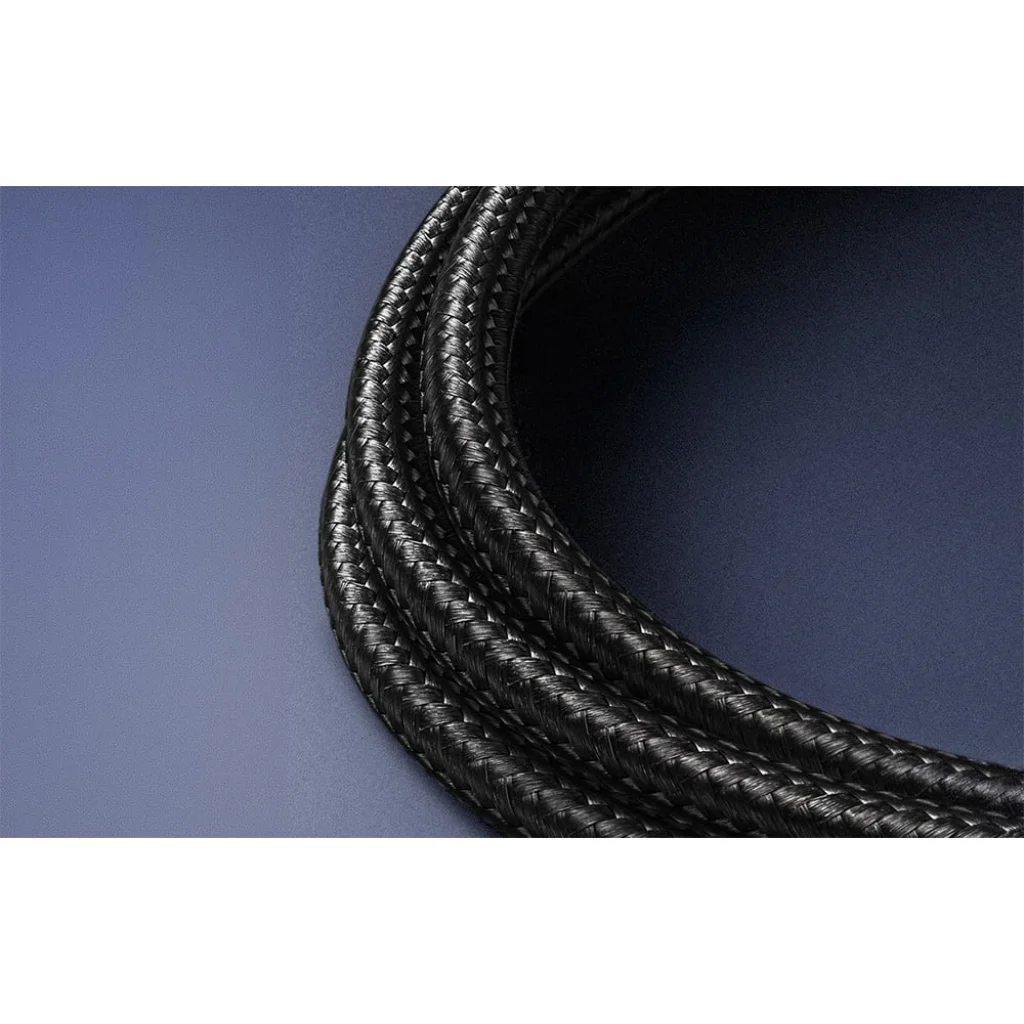 Tartós, fonott szerkezet. A kábel nylon fonattal rendelkezik, amely megvédi a kopástól és a mechanikai sérülésektől. A megerősített végek és a rugalmas kialakítás megkönnyítik a kábel elvezetését és csökkentik a törés kockázatát, ha gyakran hajlítják.