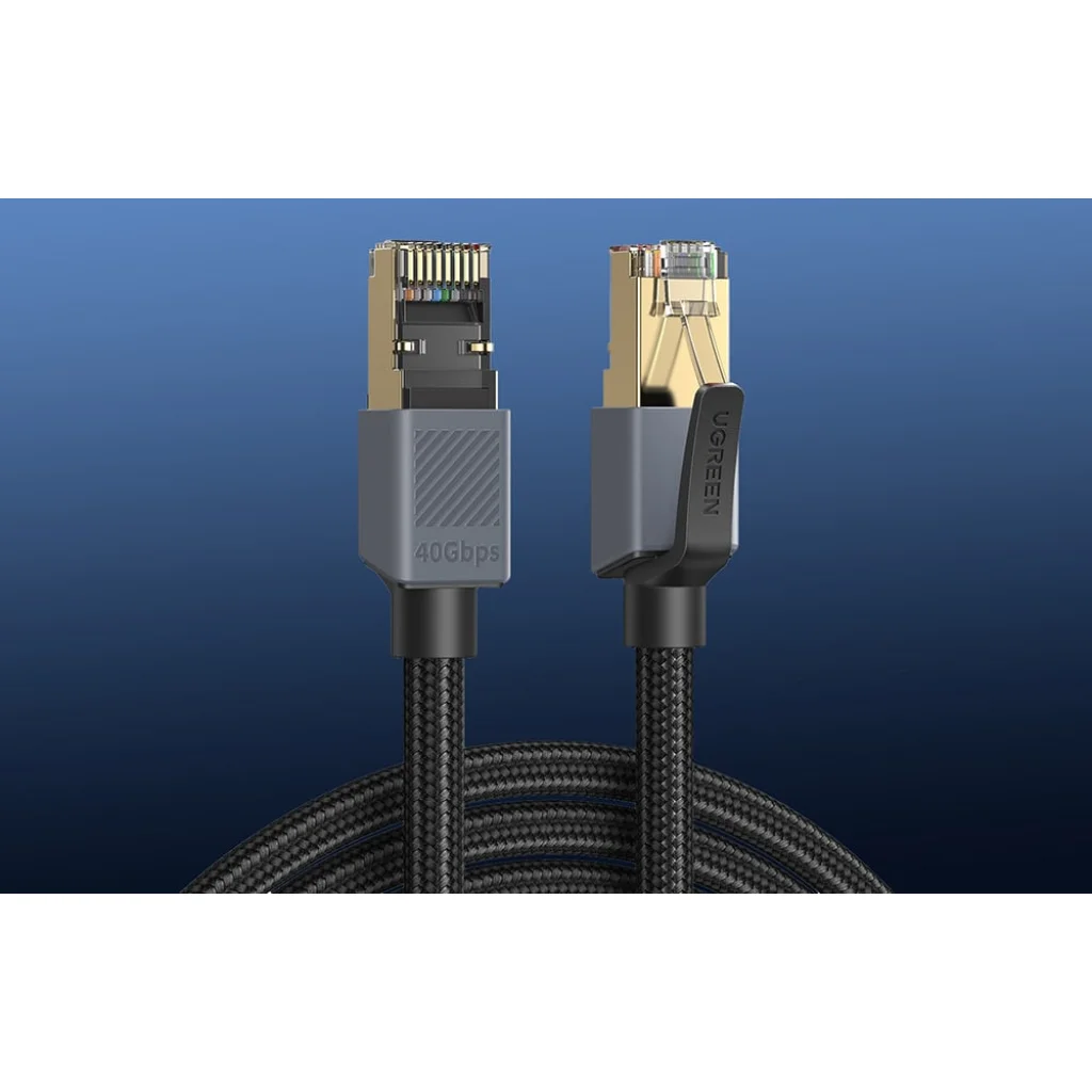 UGREEN NW343 Cat8 Ethernet kábel Az UGREEN NW343 Cat8 Ethernet kábel nagy sávszélességű és megbízható adatátvitelre lett tervezve. Akár 40 Gbps sebességet és 2000 MHz frekvenciát is támogat, így mindennapi internethasználatra, mind pedig igényesebb alkalmazásokra, például online játékokra, kiváló minőségű streamingre vagy nagy fájlok kezelésére helyi hálózaton is alkalmas.