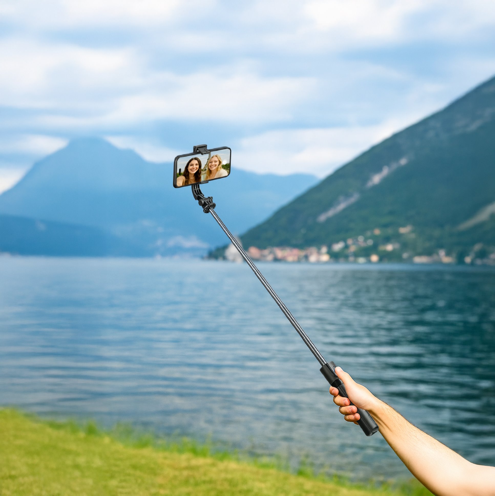 Kihúzható kialakításával és levehető Bluetooth távirányítójával lehetővé teszi önarcképek, csoportképek, stabil termékfotók, utazási videók vagy otthoni vlogok rögzítését.