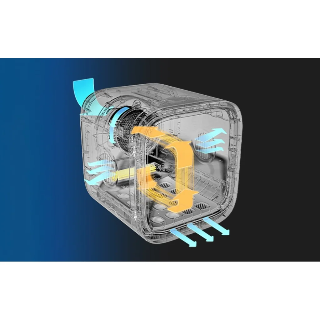 A készülék 6 oldalról biztosít légáramlást, így hatékonyan szárítja a nehezen elérhető területeket is, például a kisállatok hasát és mancsait. Nem kell aggódnod a bent rekedt levegő miatt sem, mivel az intelligens keringetőrendszer folyamatos friss levegőellátást biztosít.