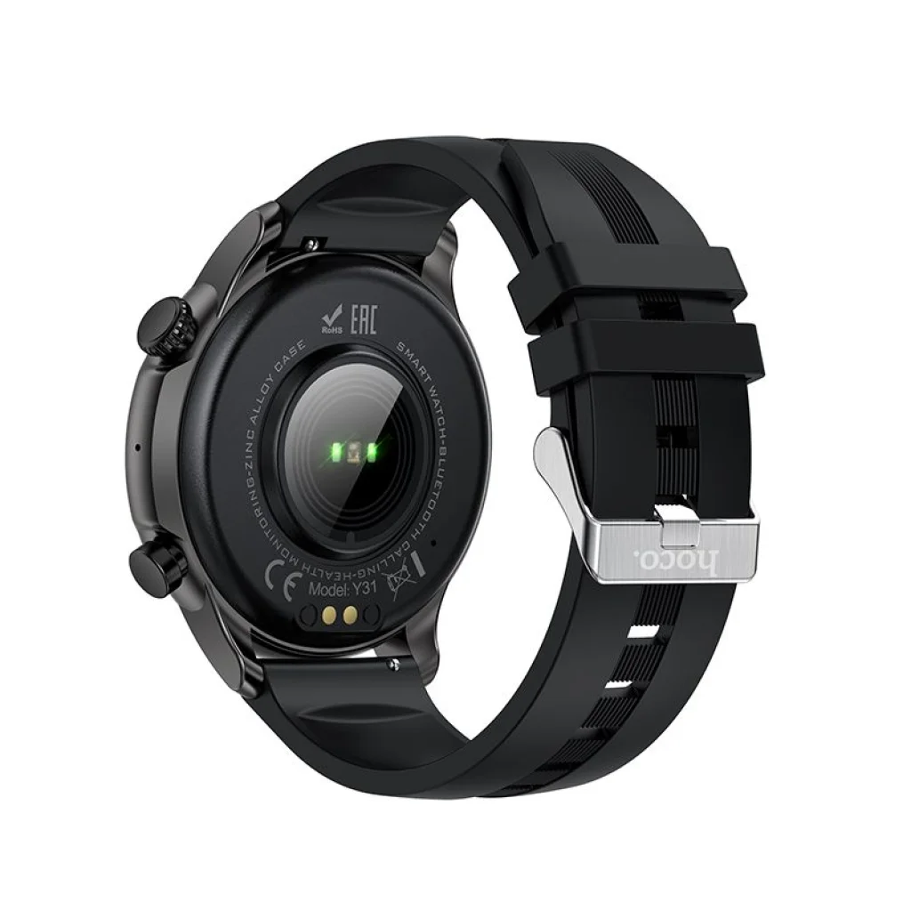 Az elegáns, vízálló Hoco Y31 okosóra tökéletes munkához, otthonra, utazáshoz vagy edzéshez. Színes kijelzővel, több sport módokkal rendelkezik, méri a pulzust és az oxigénszaturációt, valamint figyeli az alvást. Lehetővé teszi a hívások kezdeményezését, a híváskezelést, a névjegyek böngészését, az értesítések olvasását. A Hoco okosóra aktív emberek számára készült. A stílusos kialakítás bármilyen csuklón jól mutat. Vízállósági szintje IP67. A használat kényelmességét az 1,46 hüvelykes átmérőjű és 360 x 360 px felbontású TFT színes képernyő biztosítja, amely 22 nyelvi verzióban támogatja a menüt. Egy töltéssel a készülék akár 7 napig is működhet. Az okosórában beépített hangszóró és mikrofon található, amely lehetővé teszi a hívások fogadását és kezdeményezését az óra használatával anélkül, hogy ki kellene venni a telefont a zsebből. Lehetővé teszi továbbá üzenetek és értesítések olvasását. Az okosóra megvizsgálja a fizikai aktivitást a pulzus és az oxigénszaturáció mérésével, valamint az alvás figyelésével. Lehetővé teszi az edzés előrehaladásának ellenőrzését számos edzésmód, alvásfigyelés, valós idejű pulzus, vér oxigénszint és egyéb funkciók révén. Az óra kompatibilis iOS és Android rendszerekkel rendelkező eszközökkel.