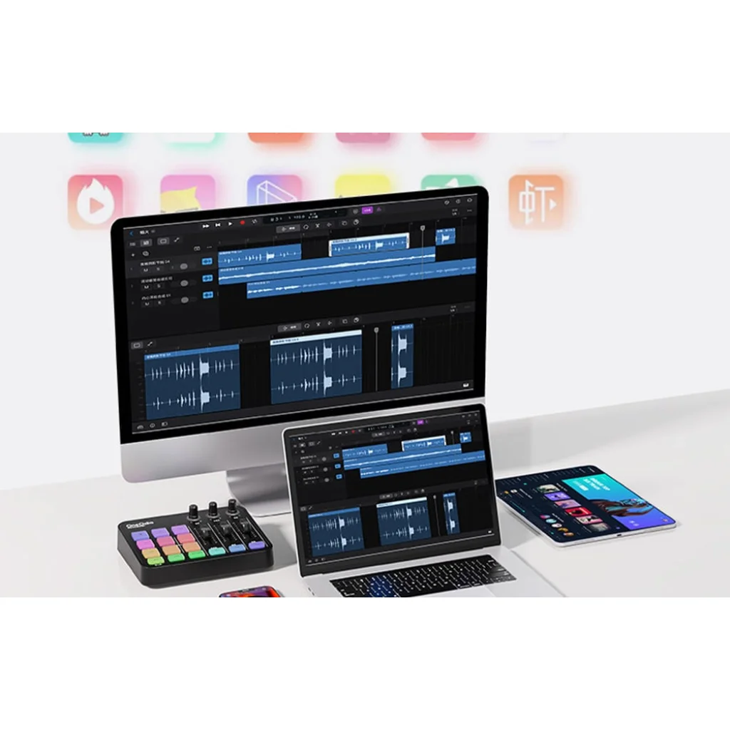 A Solocaster úgy lett kialakítva, hogy kompatibilis legyen az élő streaming és karaoke alkalmazások 99,99%-ával, beleértve a TikTok, Bilibili, Kwai és sok más alkalmazást - csak csatlakoztassa az eszközt - nincs szükség bonyolult konfigurációra. A keverő 99,99%-ban kondenzátor mikrofonokkal működik, támogatva a 48V-os fantomteljesítményt, és zökkenőmentesen csatlakozik a PS4 és PS5 konzolokhoz. Akár számítógépről, laptopról, táblagépről, okostelefonról vagy konzolról streamelsz, a OneOdio Solocaster a stúdió középpontjaként működhet, integrálva minden eszközt és platformot.