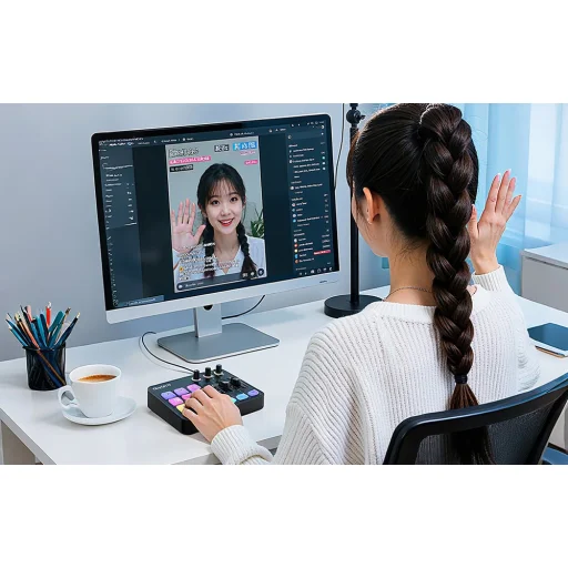 A 11 üzemmóddal rendelkező dinamikus RGB háttérvilágítás lehetővé teszi, hogy a készülék megjelenését a munkaállomás karakteréhez és az adás hangulatához igazítsa - a nyugodt animációktól a kifejezőbb, dinamikusabb fényhatásokig. Az üzemmódok váltása egyetlen érintéssel történik - nincs szükség alkalmazásokra vagy további beállításokra. Az alkalmazott lágy fénydiffúziós technológiának köszönhetően a színátmenetek simák és természetesek, a háttérvilágítás pedig szembarát marad - még több órás streaming, felvétel vagy játék közben is.