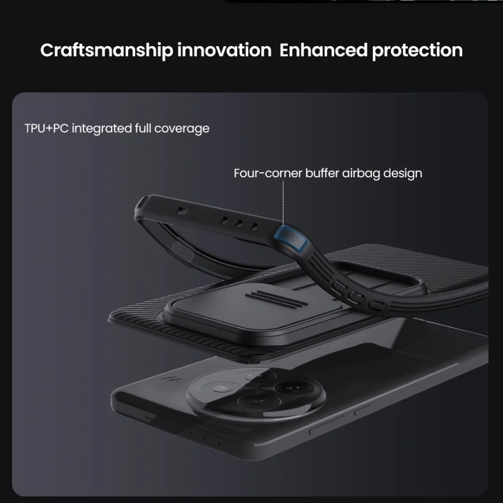 A Nillkin CamShield PRO egy egyedi hátlap csúsztatható kameravédő fedéllel. Az eredeti CamShieldhez képest az a különlegessége, hogy két anyagból áll össze. A hátlap erős és tartós műanyagból készült, beleértve a kameravédőt is. A tok kerete puhított TPU műanyagból készült, hogy a telefon széleit és sarkait a legjobban védje. Mindkét anyag rendkívül ellenálló a kopással, valamint az ujjlenyomatokkal és zsírral szemben. A vezérlőelemek és a szükséges csatlakozók pontos kivágásai biztosítják a telefon kényelmes használatát.