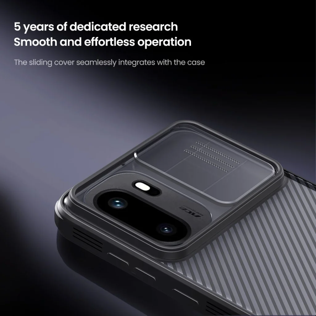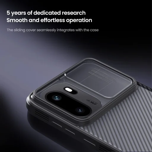 A Nillkin CamShield PRO egy egyedi tok csúsztatható kamera lencsetakaróval. Emellett, a klasszikus CamShield-hez képest egyedi, mivel két anyagból áll. A tok hátoldala erős és tartós műanyagból készül, beleértve a kamera fedelét is. A tok kerete lágyított TPU műanyagból készült, hogy a telefon szélei és sarkai a lehető legjobb védelemben részesüljenek. Mindkét anyag rendkívül ellenálló a kopással, valamint az ujjlenyomatokkal és zsírral szemben. A vezérlőelemek és a szükséges csatlakozók precíz kivágásai biztosítják a telefon kényelmes használatát.